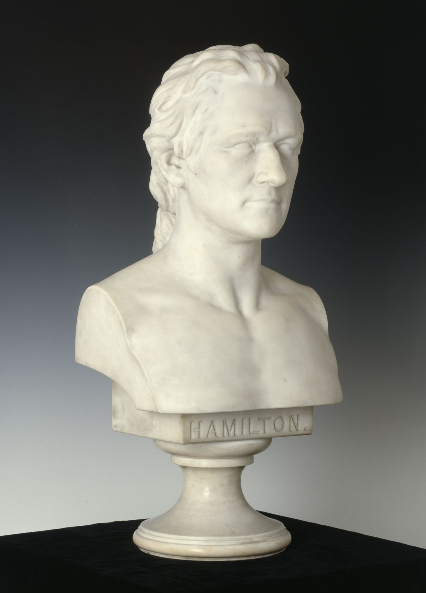 Carved bottom front of bust: HAMILTON.; carved on reverse of bust: E. D. Palmer SC/1862; carved on reverse of pedestal: Presented/by/Miss Southwyck