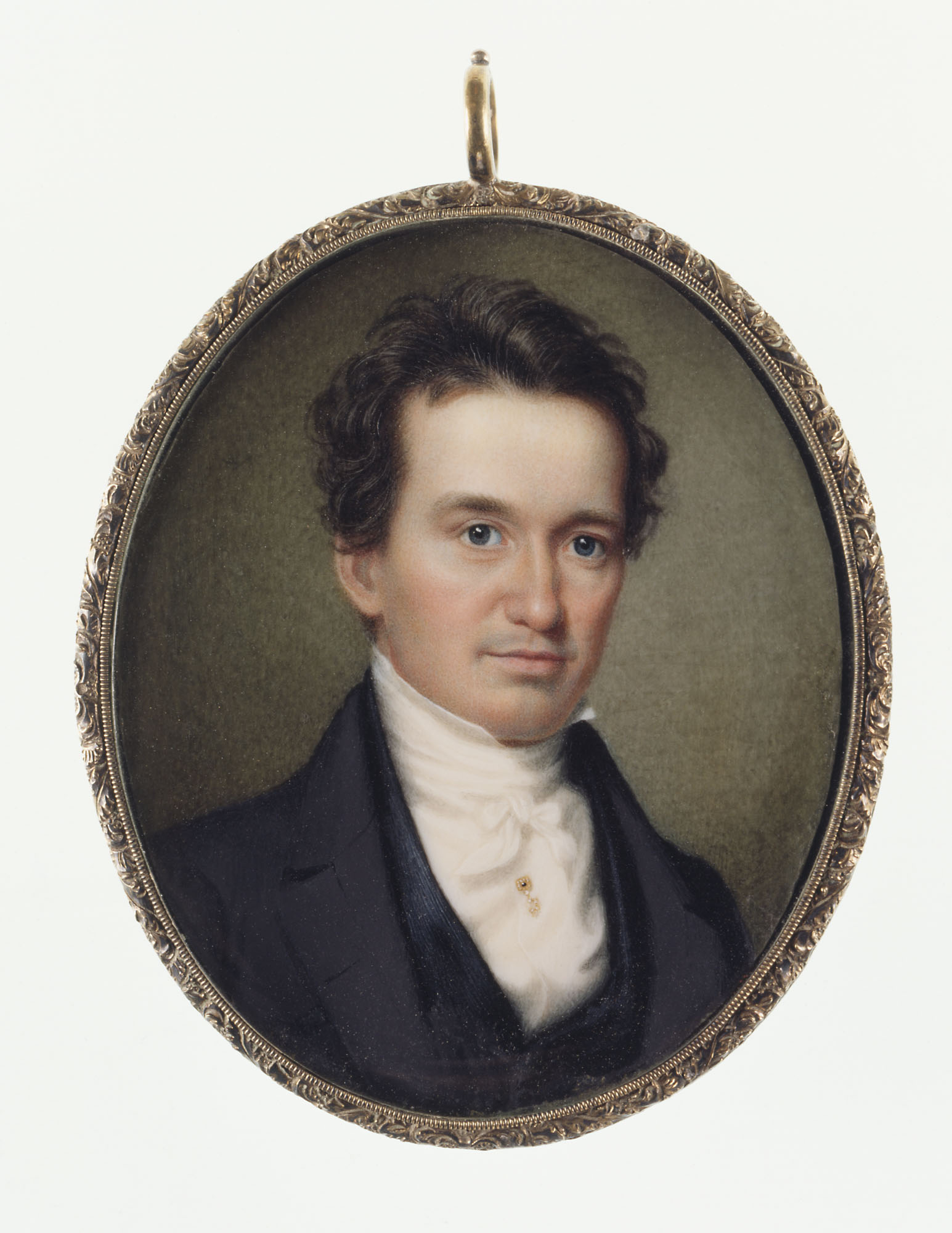 Throughout the first half of the nineteenth century, Albany residents commissioned portrait miniatures. Among the best-known area painters of miniatures were Anson Dickinson and the brother-and-sister team of Daniel Wagner and Maria Louisa Wagner. Throughout the first half of the nineteenth century, Albany residents commissioned portrait miniatures. Among the best-known area painters of miniatures were Anson Dickinson and the brother-and-sister team of Daniel Wagner and Maria Louisa Wagner. This miniature, painted shortly after the sitter's marriage in 1842, is attributed to Daniel Wagner. Dean was a founder of Albany Medical College and president of the Young Men's Association in Albany.