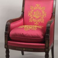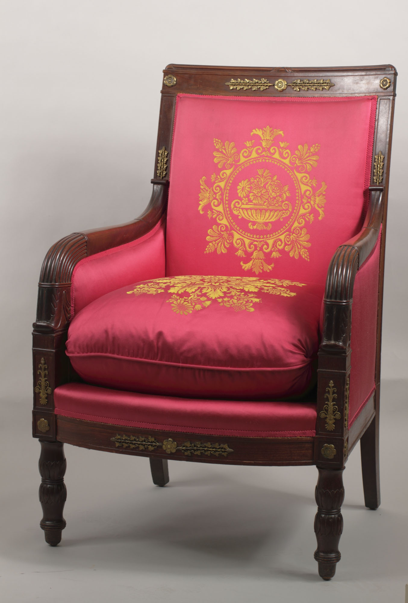 Mahogany with ormolu mounts, silk upholstery (modern)