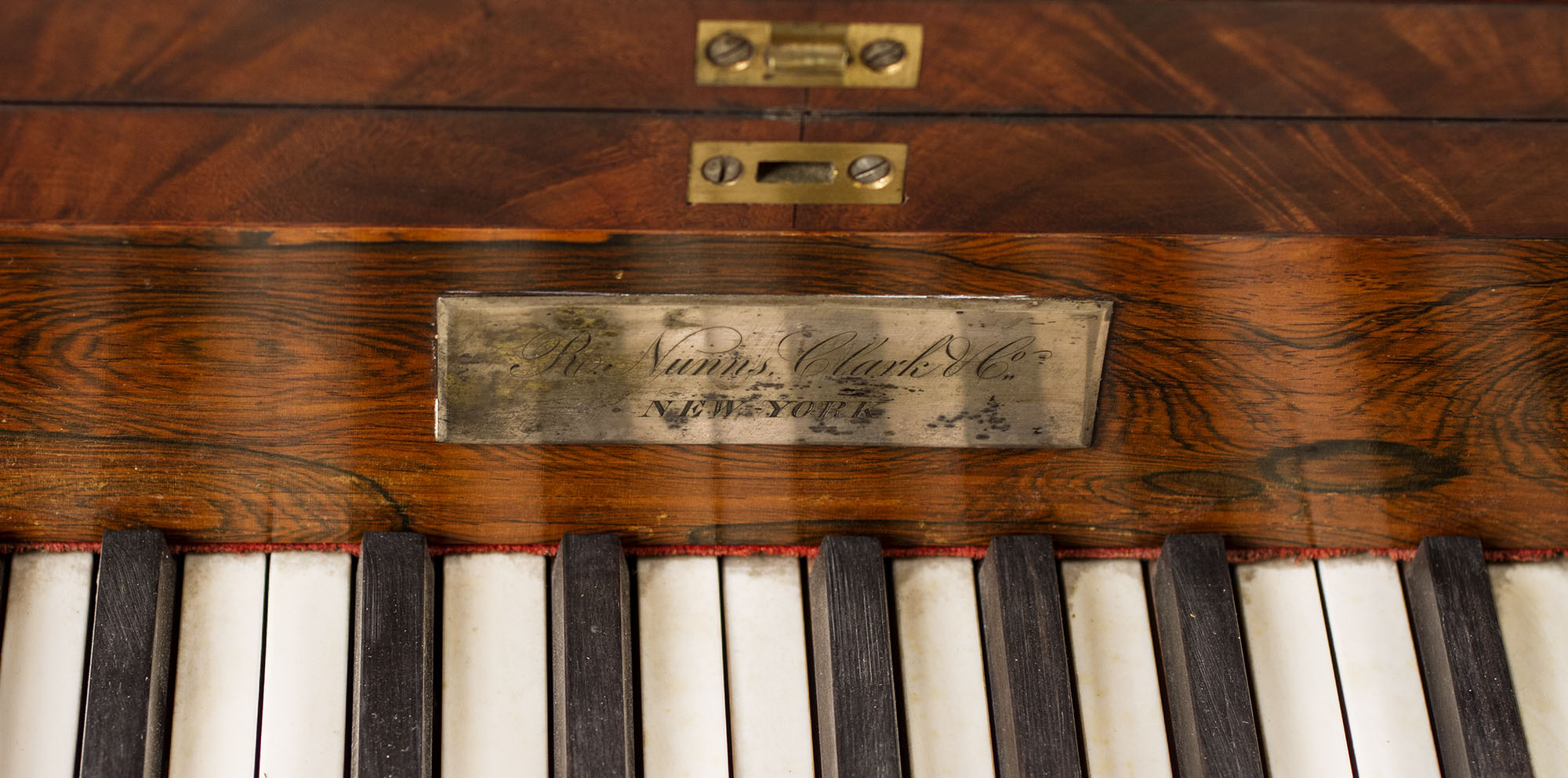 Engraved silver plaque above keyboard: “R. Nunns, Clark & Co. /New-York”