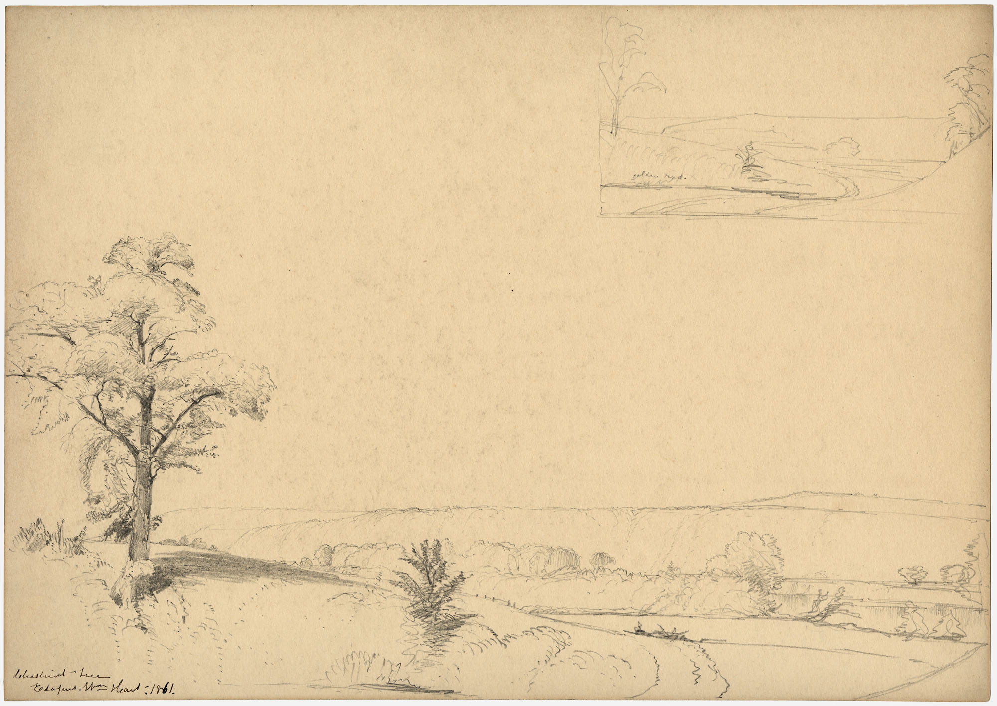 Inscribed in ink on front lower left: Chestnut tree/Esopus. Wm Hart. 1861