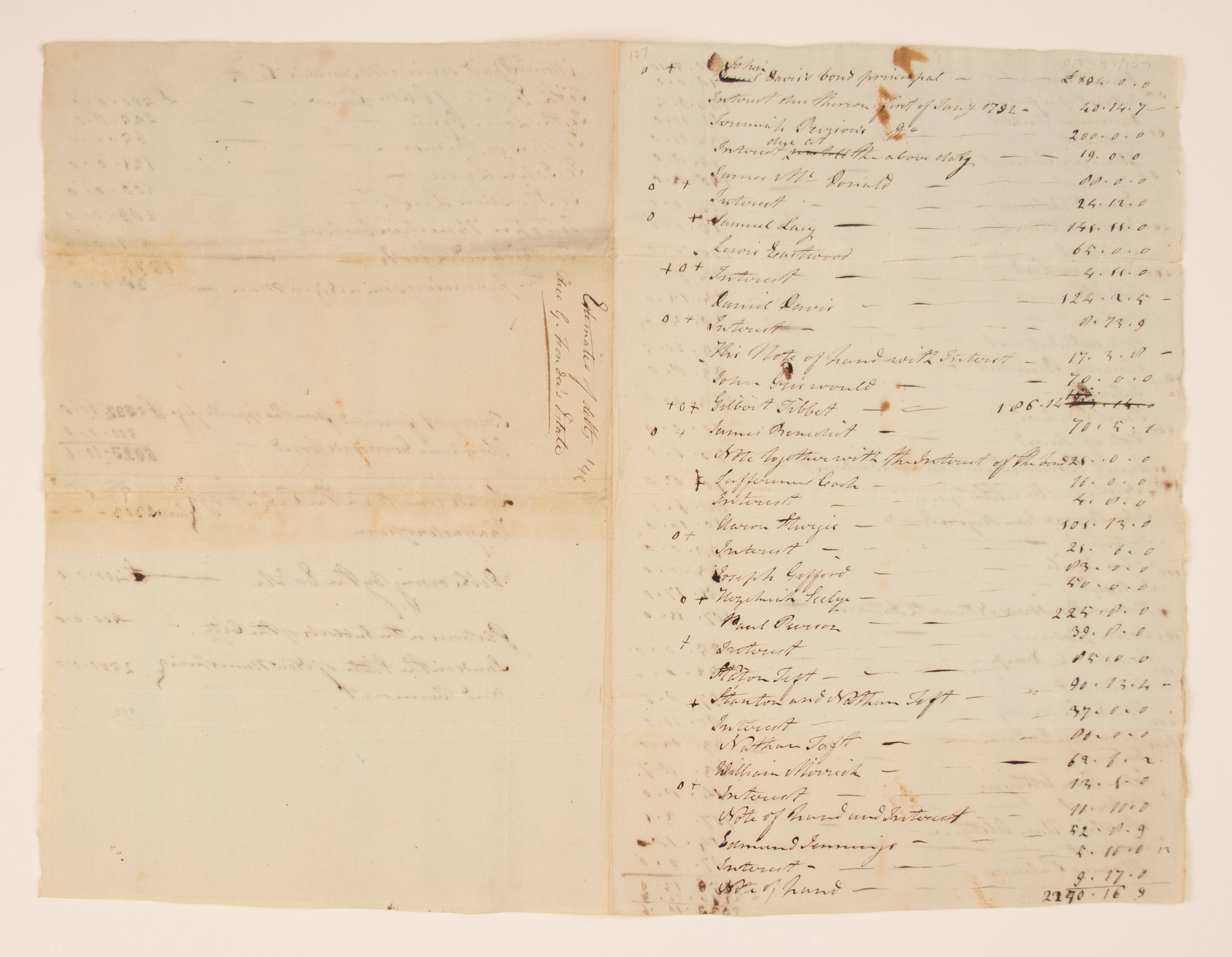 This document was created after his death, but is dated 1792, suggesting it took years to resolve his estate and settle his accounts and debts.