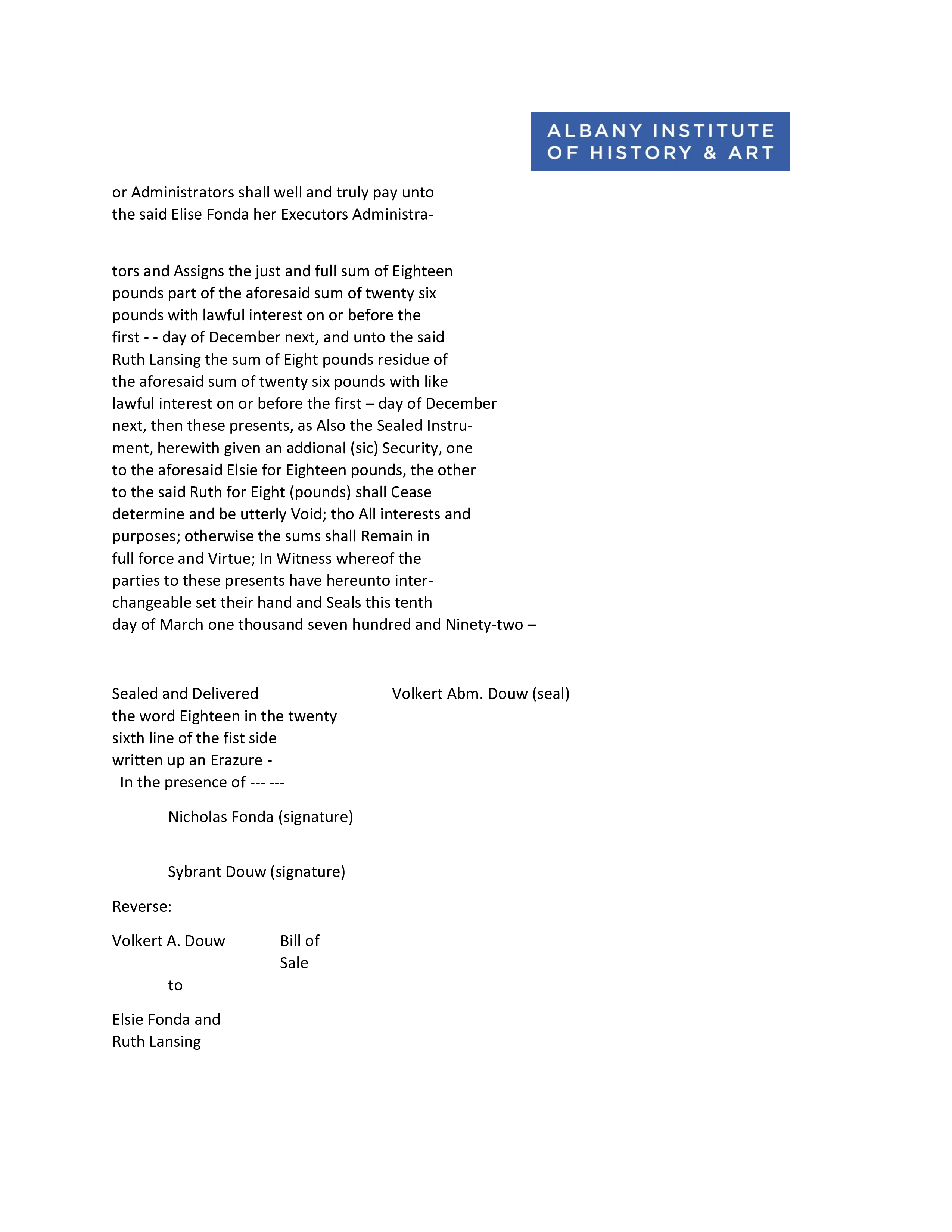 legal document, transferring Dina to Fonda and Lansing