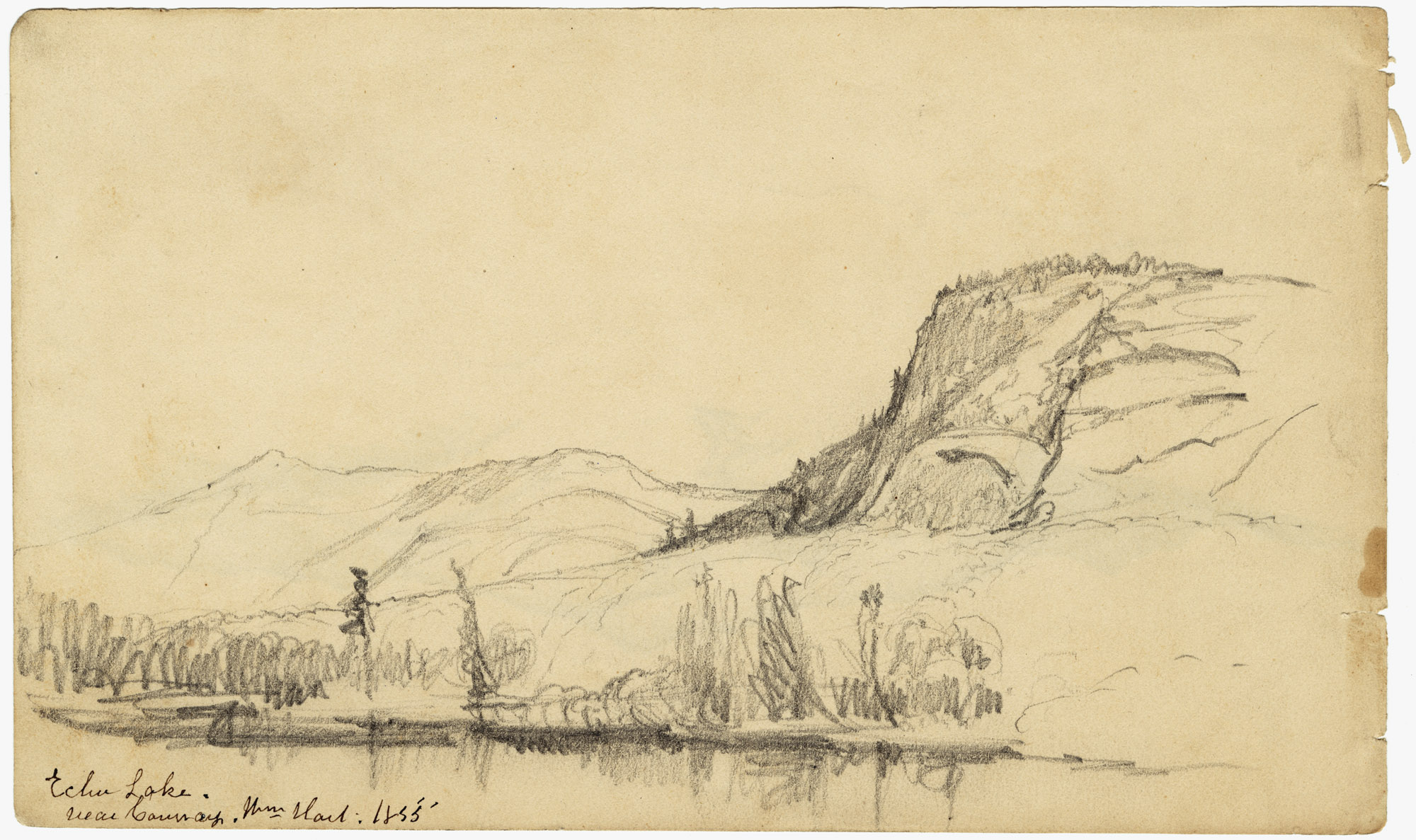Inscribed in ink, front, lower left corner: Echo Lake./near Conway. Wm Hart. 1855