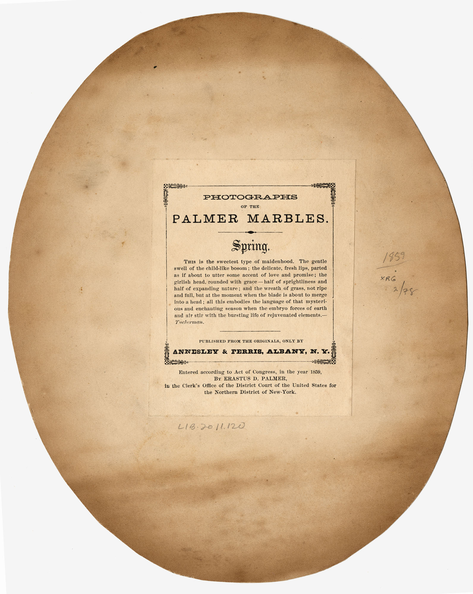 Photographed by Annesley & Ferris, Albany