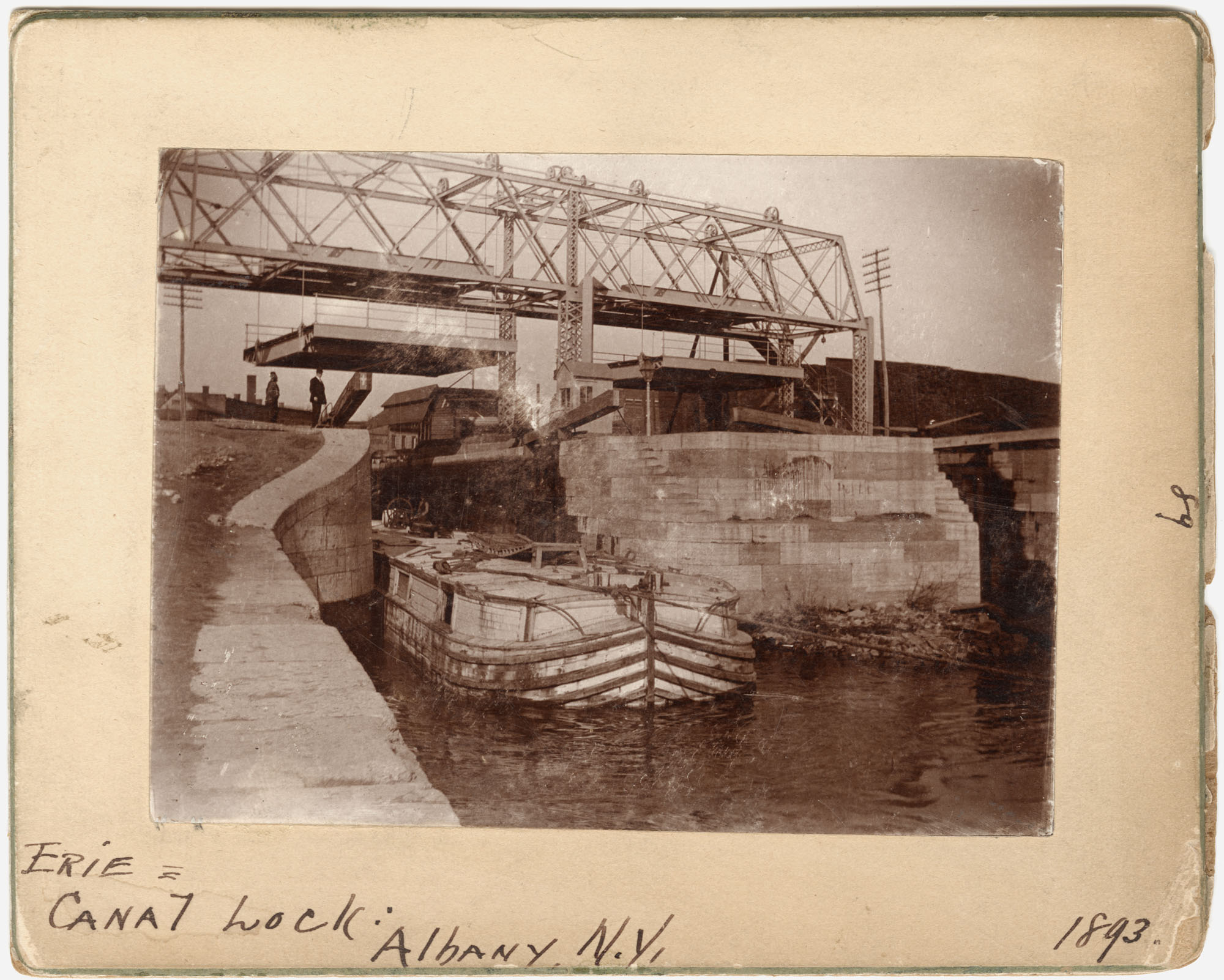 Inscribed in ink on lower edge of card: Erie/Canal Lock: Albany, N.Y./1893.; inscribed in ink on right edge of card: 89.