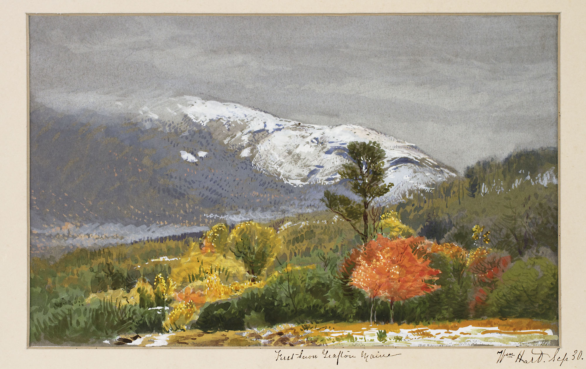 Inscribed bottom center on mat: First Snow Grafton Maine; bottom right on mat: Wm Hart. Sep 30.