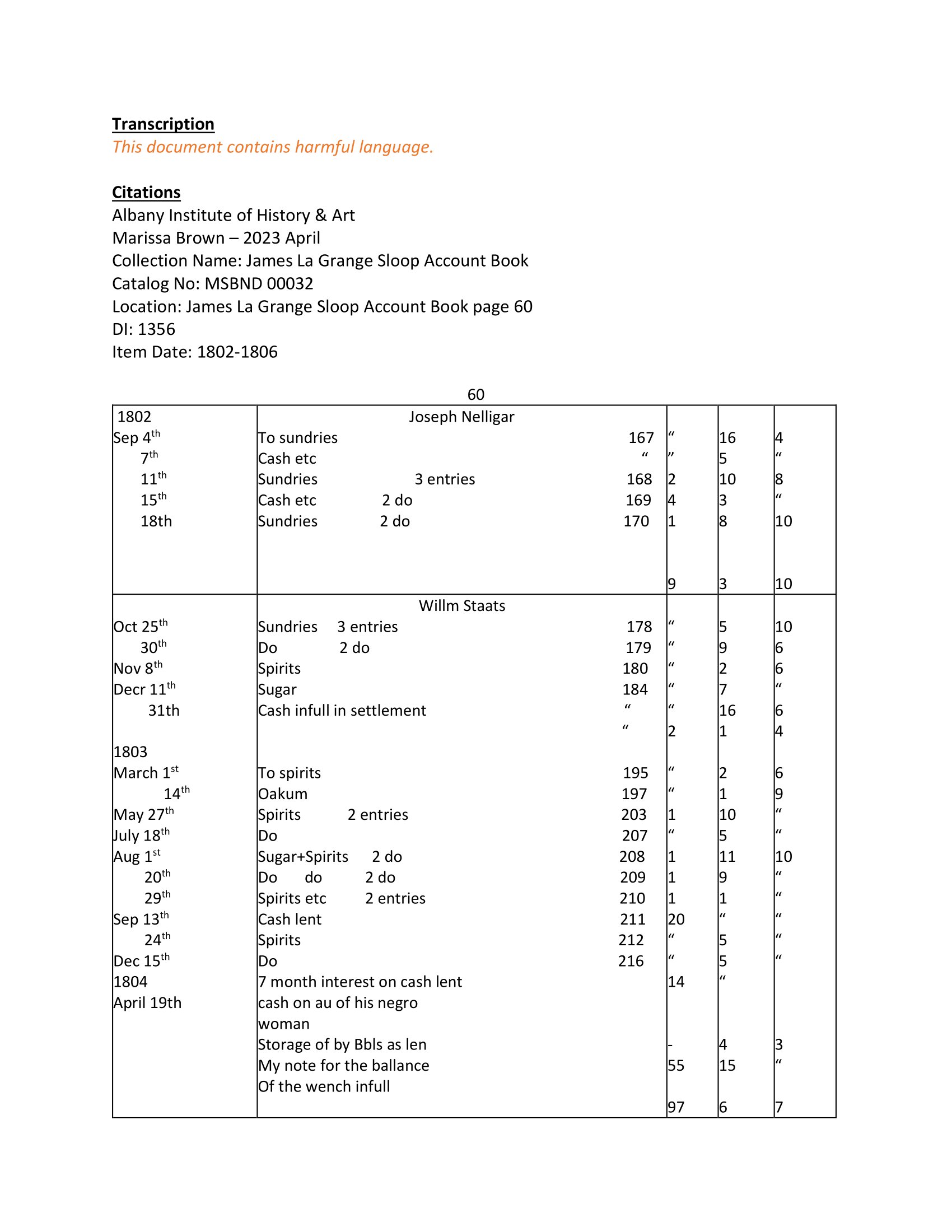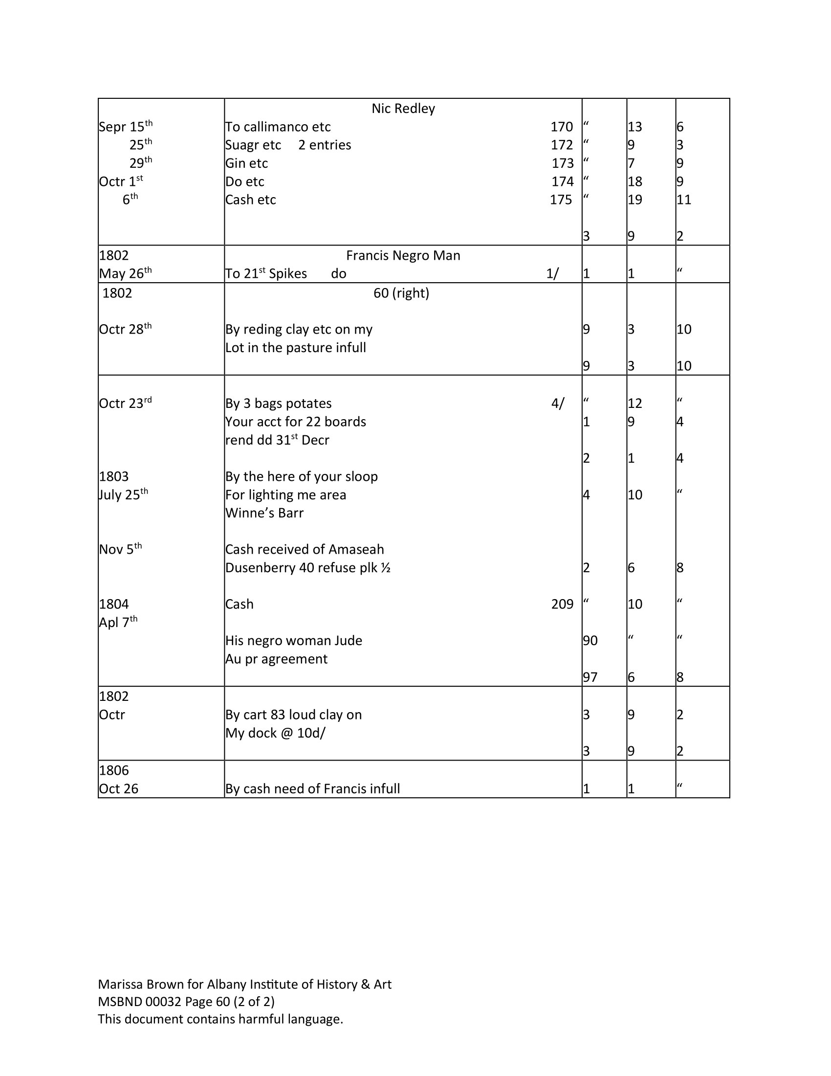 Francis and Jude - 1802 buying nails and hiring Jude accounts with James LaGrange