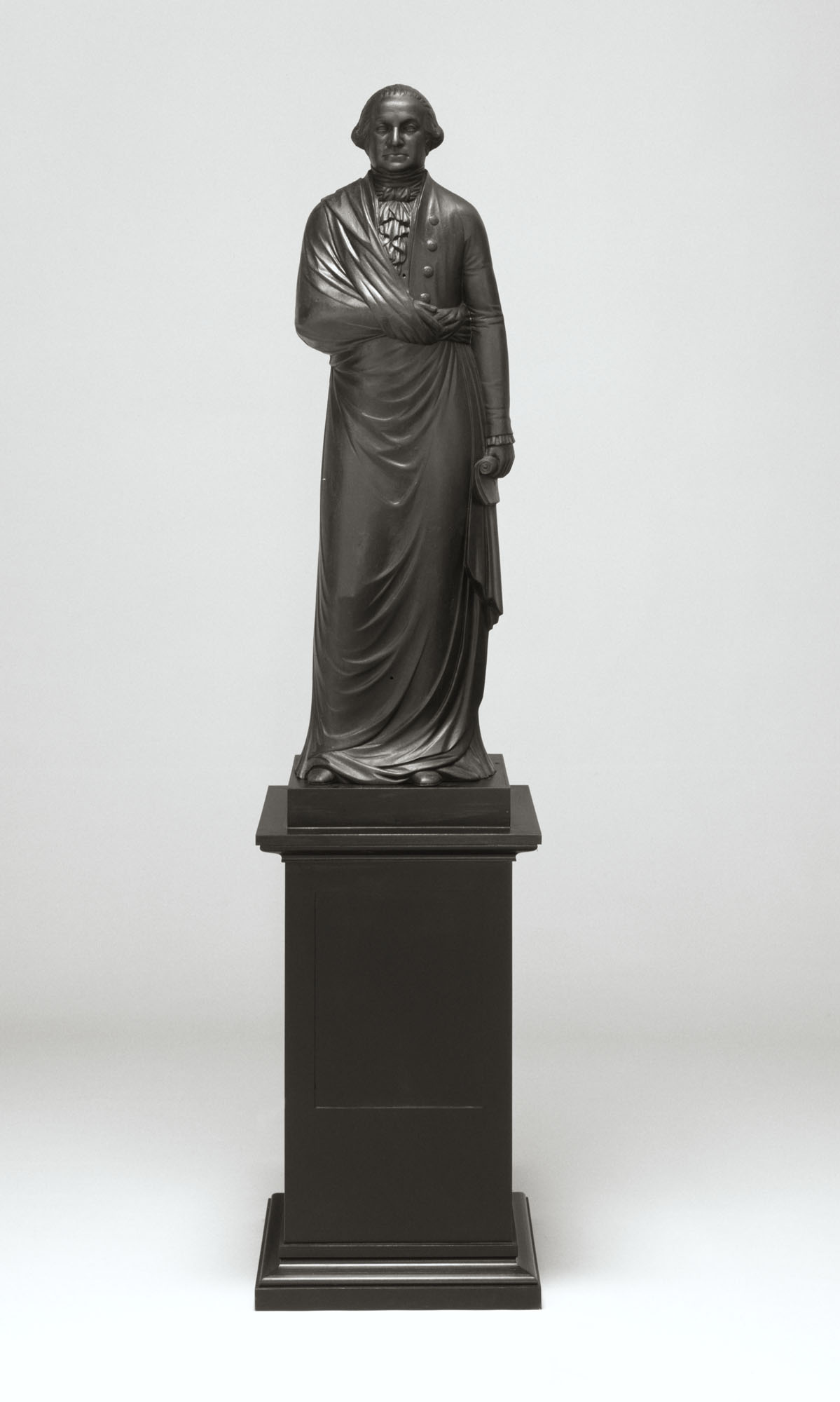 During the nineteenth century, Albany and Troy manufacturers were among the largest producers of cast-iron stoves in the world. The Hudson River allowed Troy and Albany to bring raw materials to the foundries and finished stoves to worldwide markets. This cast-iron figure of George Washington is one of the most striking of all nineteenth-century "dumb stoves." These usually did not have a firebox, but were connected by a stovepipe to a functioning stove on a floor below. That way two rooms could be heated by one stove. The designer, Alonzo Blanchard, chose Washington because the country was preoccupied with the nation's first president as a symbol of unity. In this guise, Washington is shown wearing a Roman toga over eighteenth-century clothing. Blanchard probably based his design on the 1826 marble statue of Washington by Francis Chantrey, installed in the Massachusetts State House.