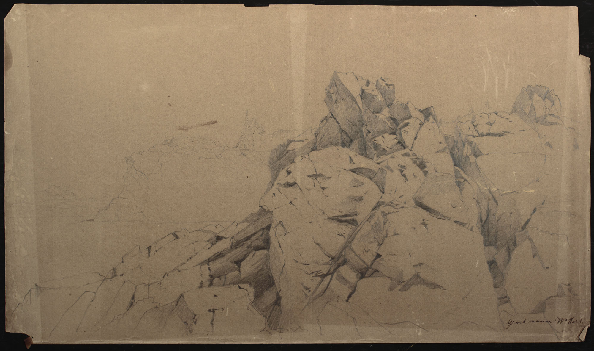 Inscribed in brown ink front lower right: Grand Manan Wm Hart.; inscribed in pencil reverse: dark /blue [illeg.] / light gray/ flesh colored on the horizon/shadows of clours and sky very delicate