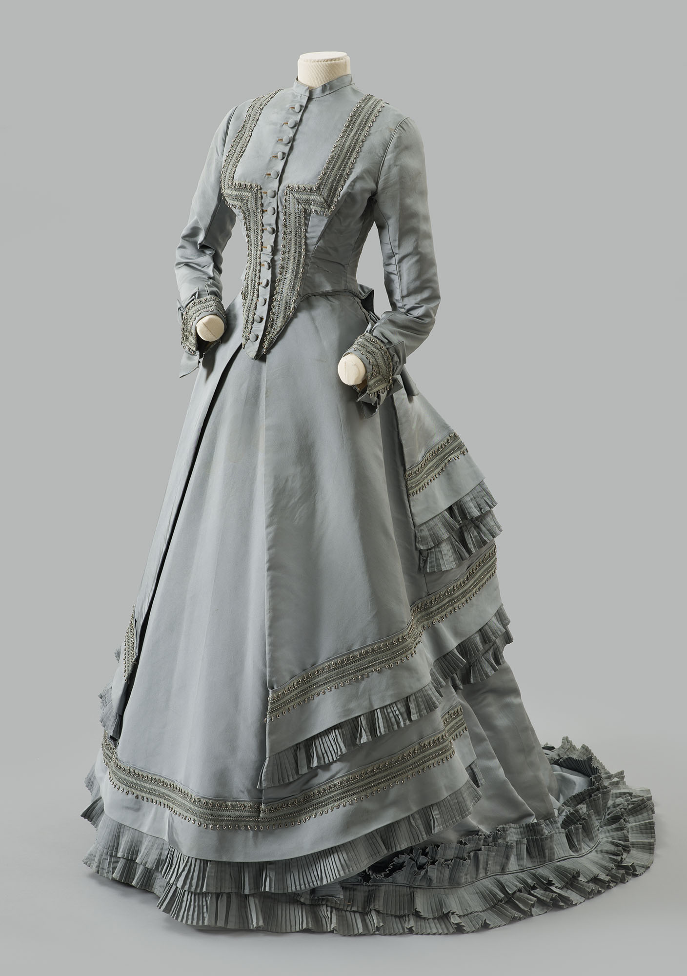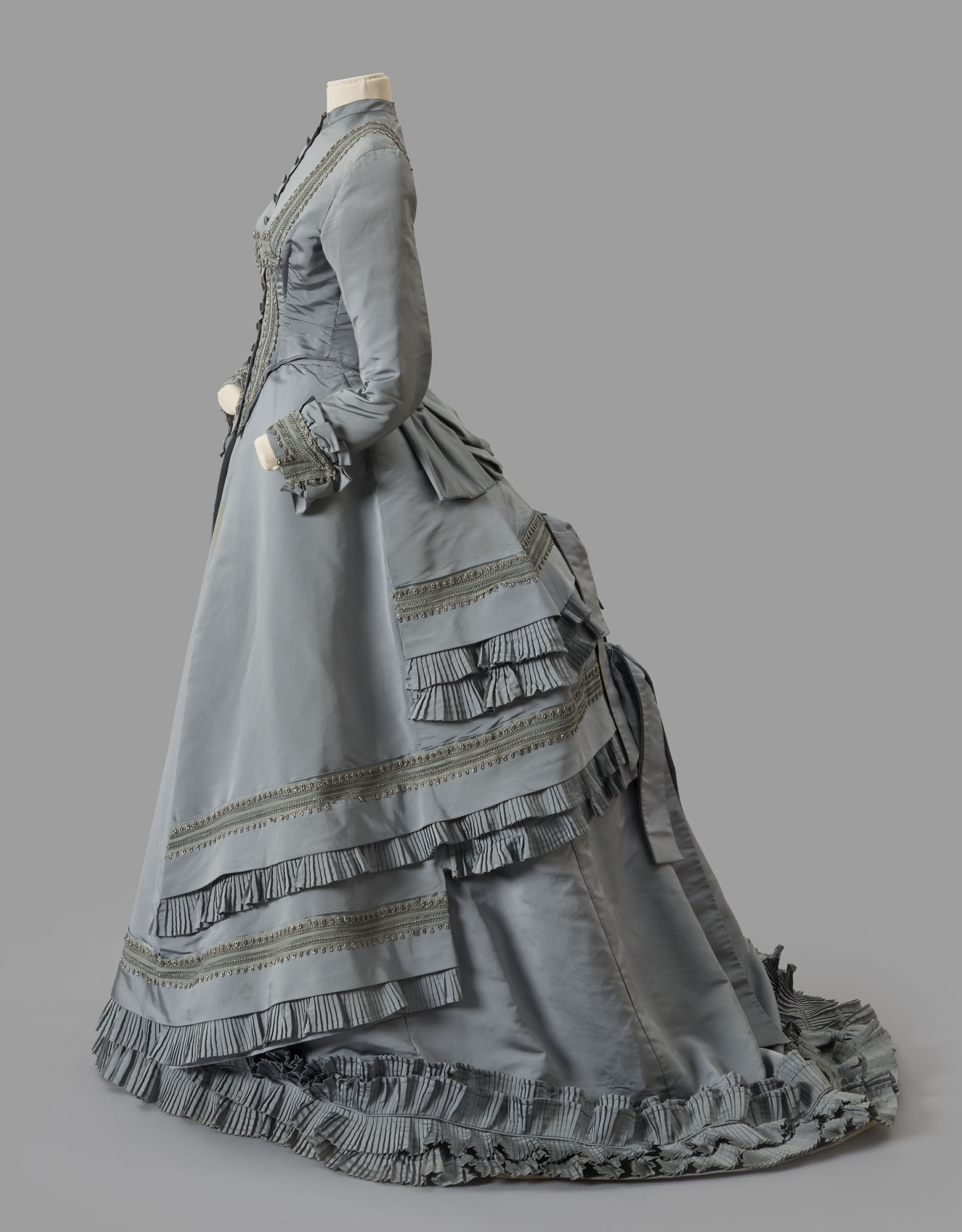 Silk faille and silk taffeta trimmed with steel beads