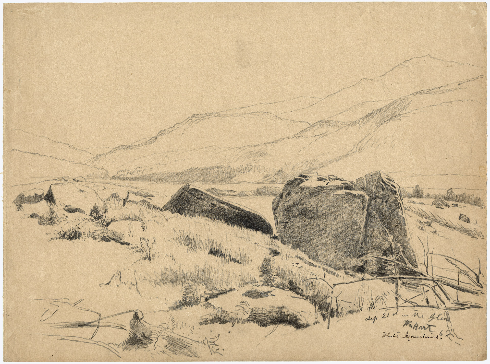 Inscribed in pencil, front, lower right: Sept 21st in the Glen/Wm Hart 62; inscribed in ink below: White Mountains.