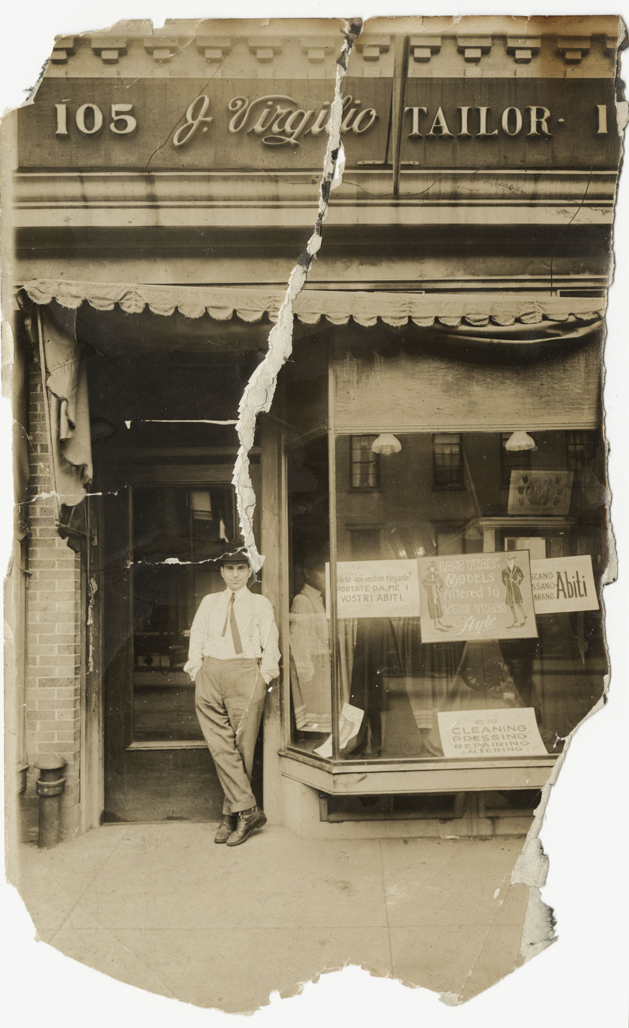 John Virgilio Outside his Tailor and Laundromat Business