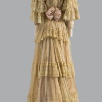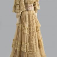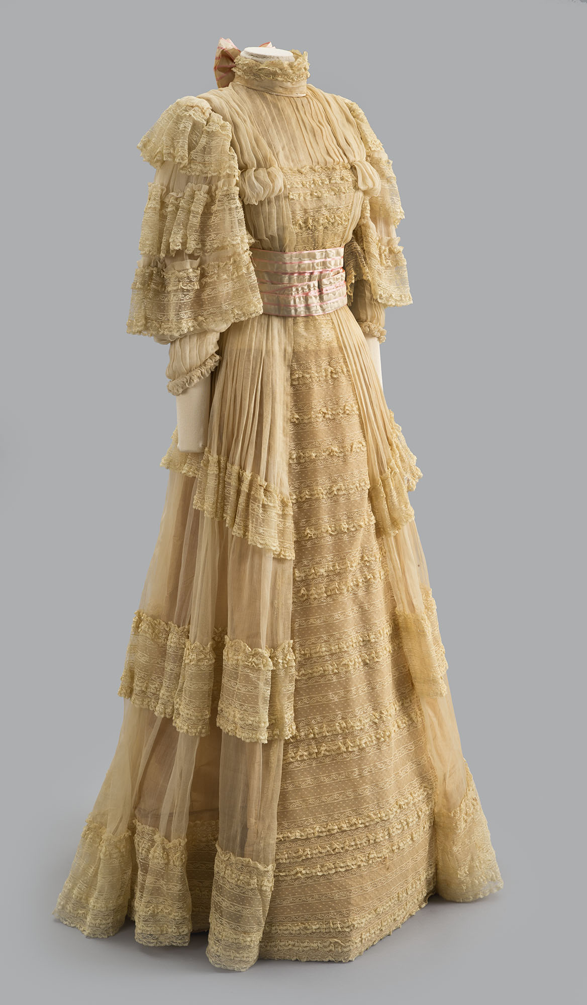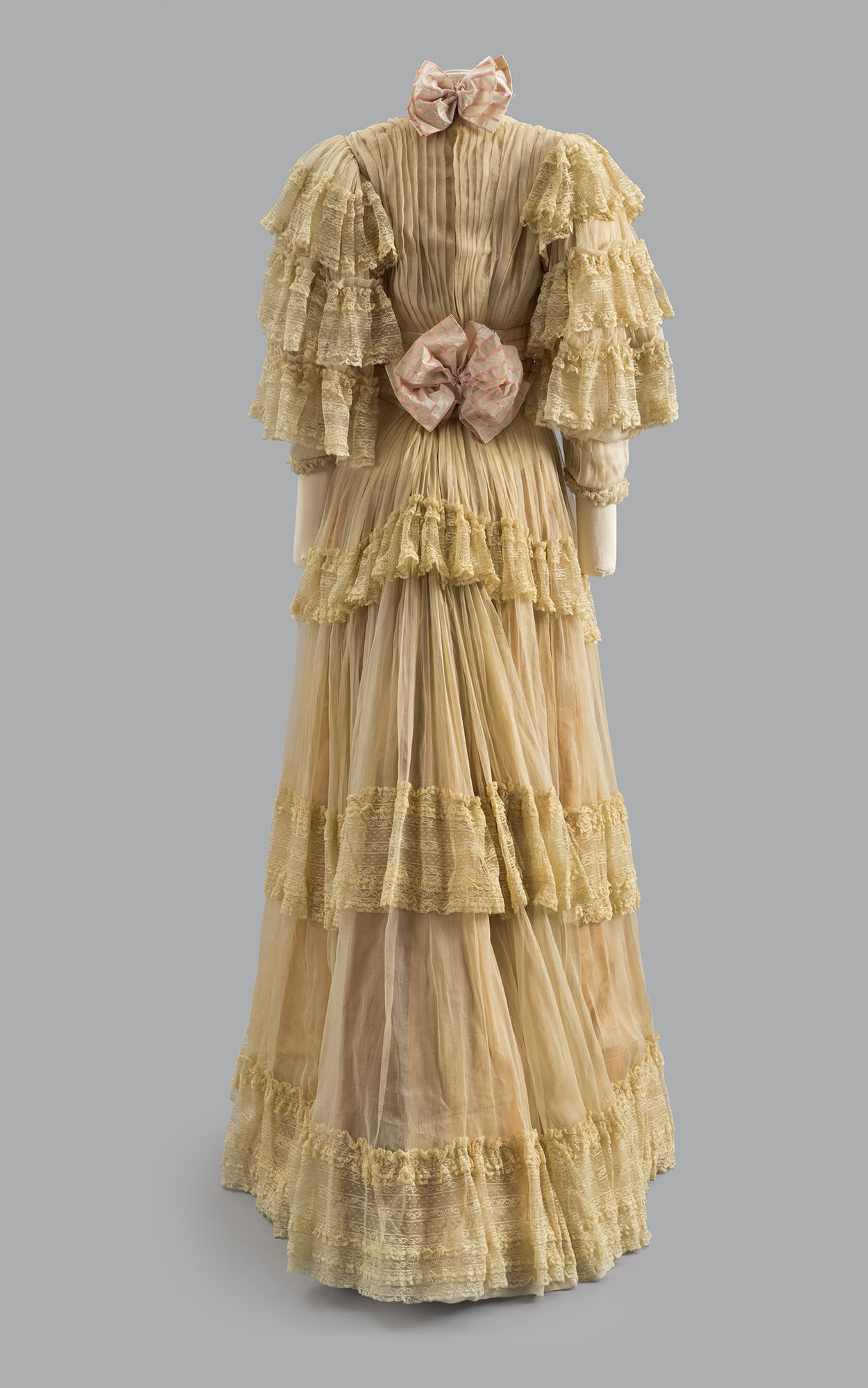 Silk chiffon, silk taffeta, lace and moiré ribbon trim