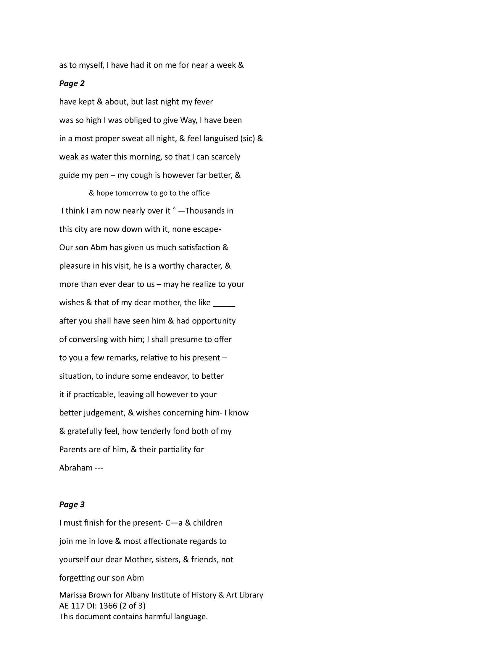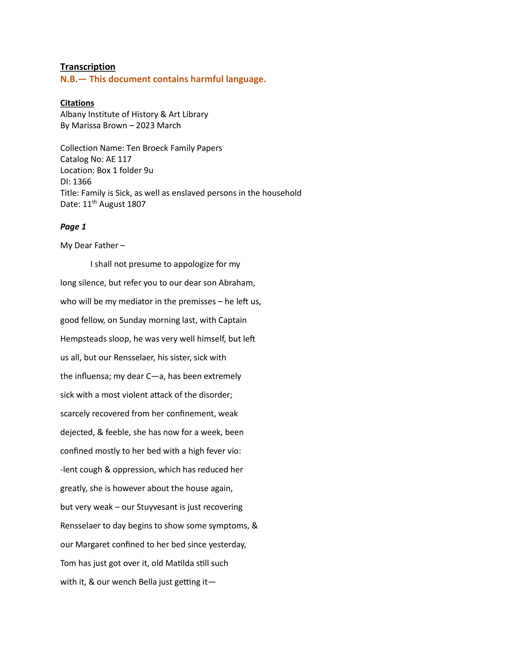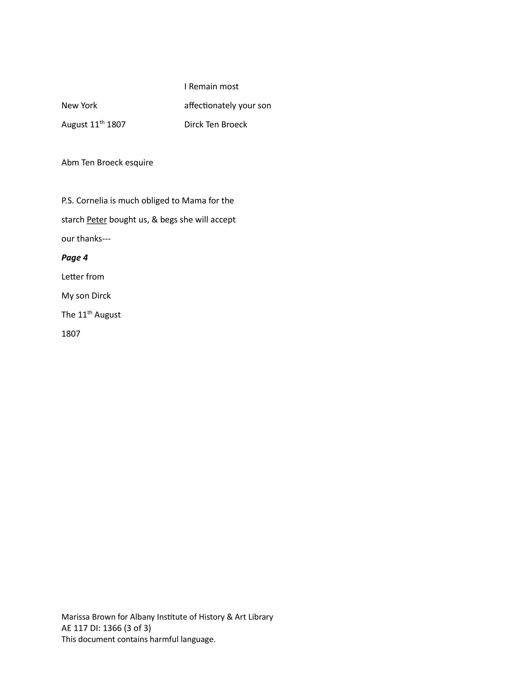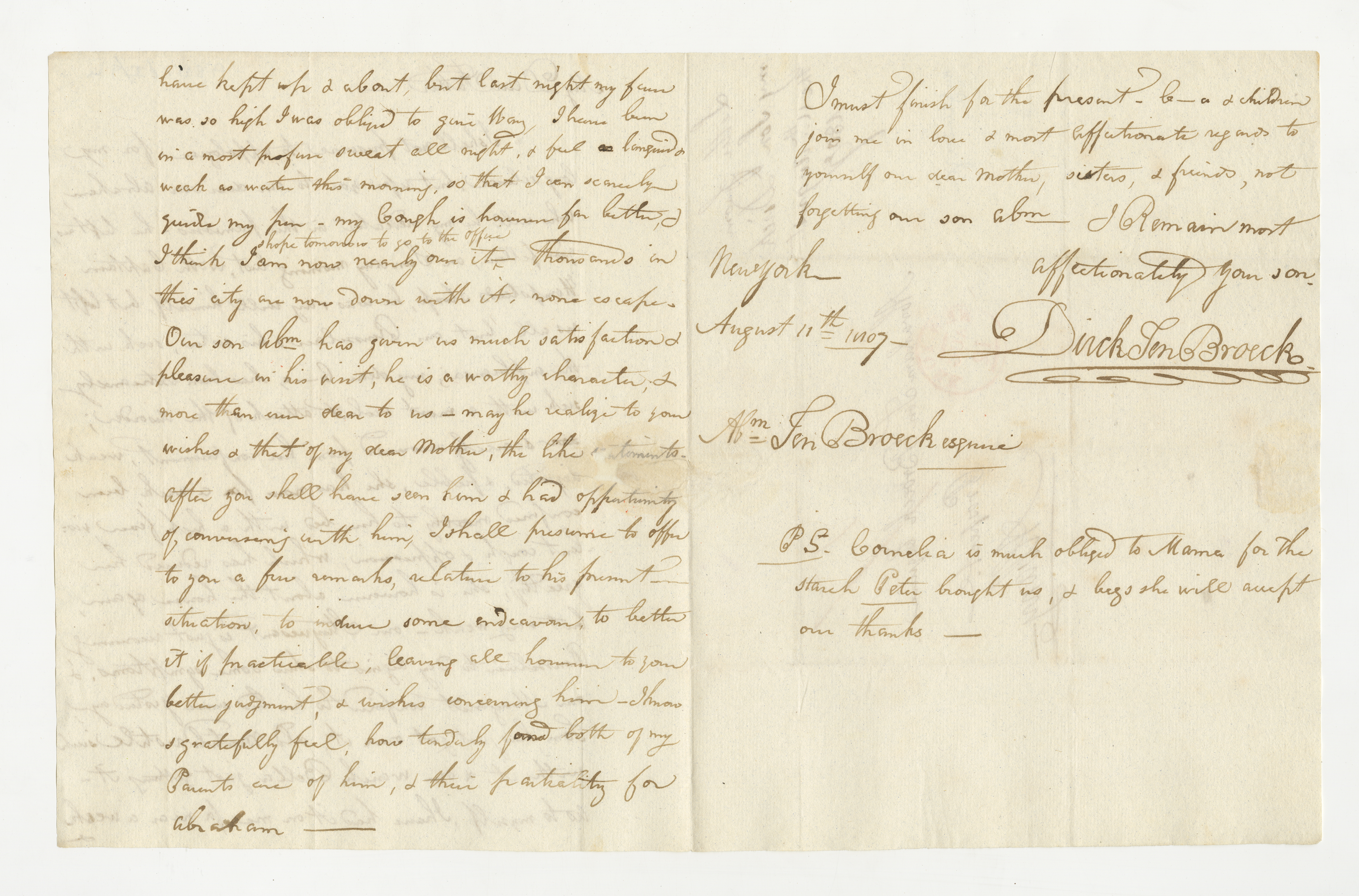 Letter - Aug. 11, 1807 Dirck Ten Broeck to his father Abraham Ten Broeck