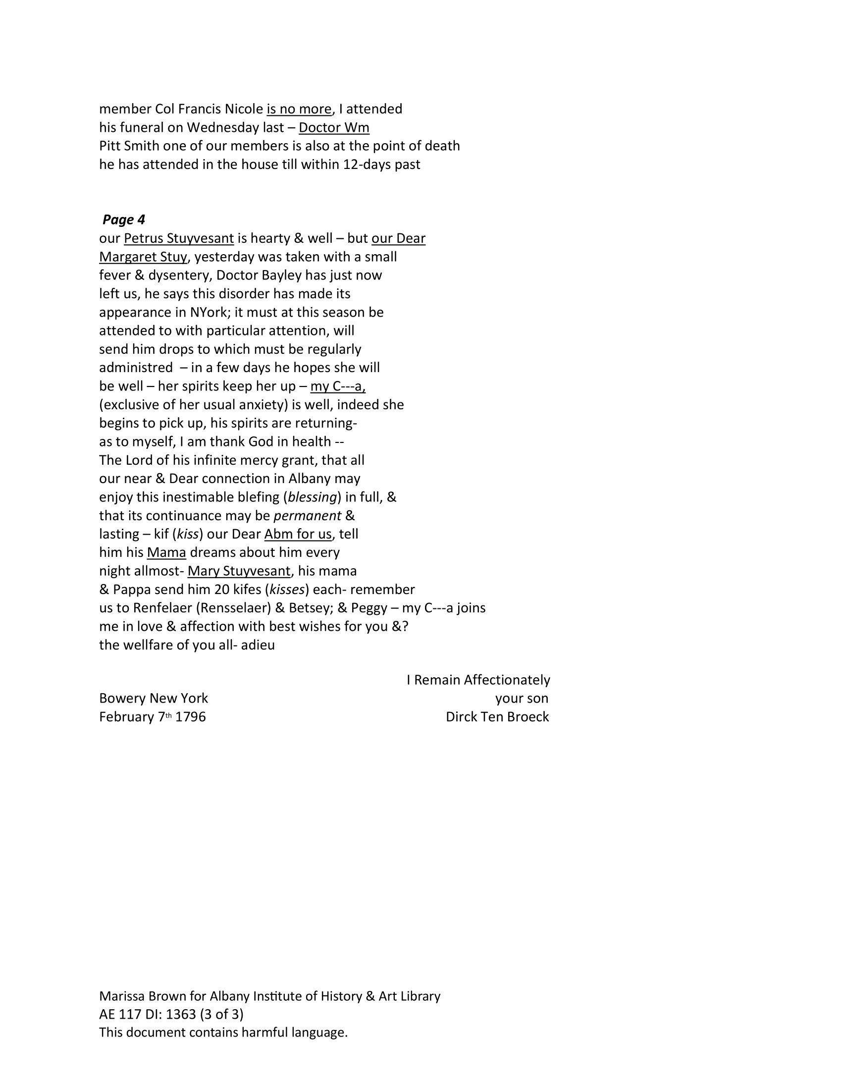 Letter - Feb. 7, 1796 Dirck Ten Broeck to his father, Abraham Ten Broeck