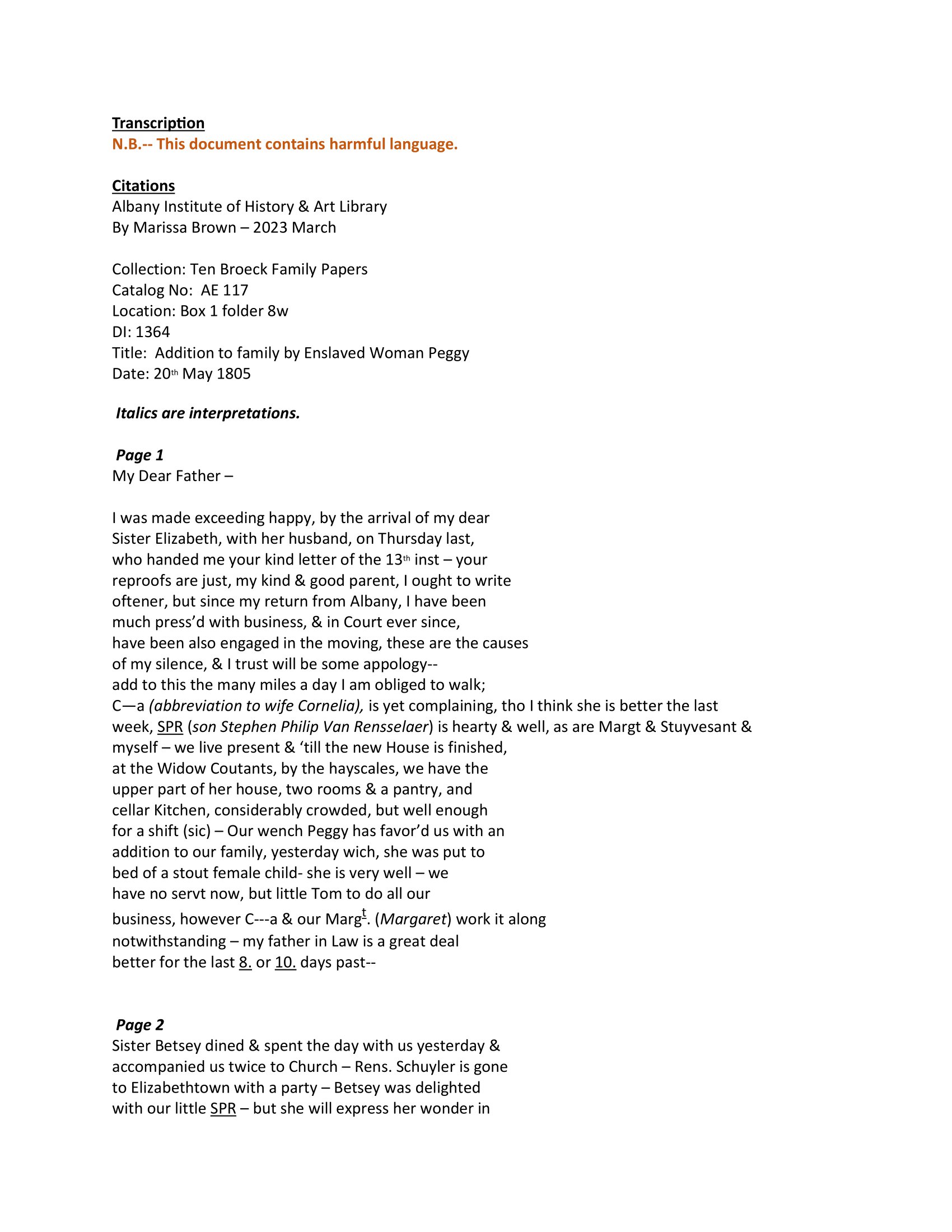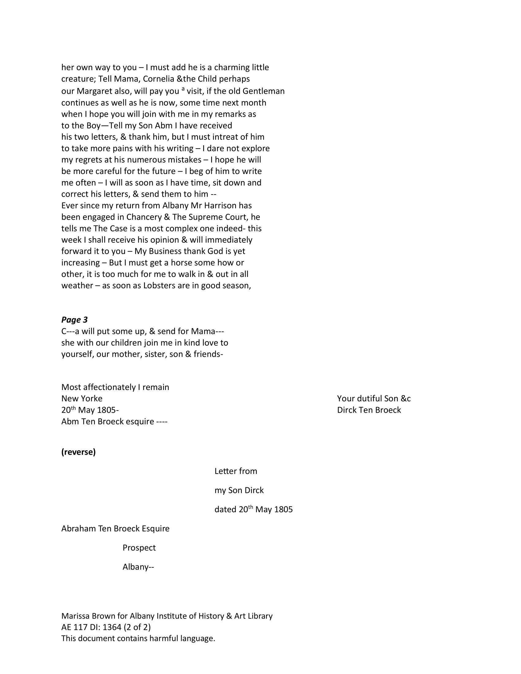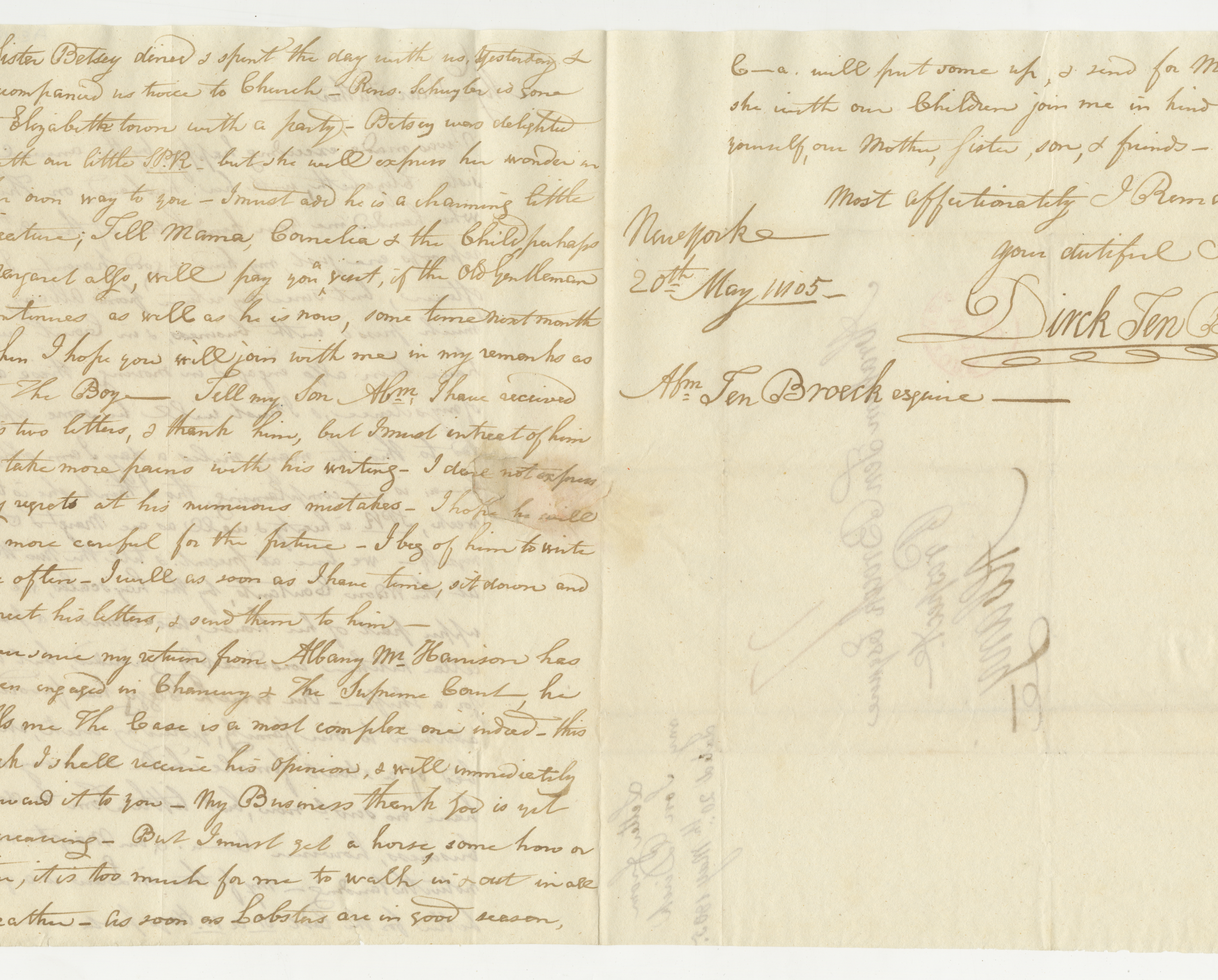 Letter - May 20, 1805 Dirck Ten Broeck to his father Abraham Ten Broeck
