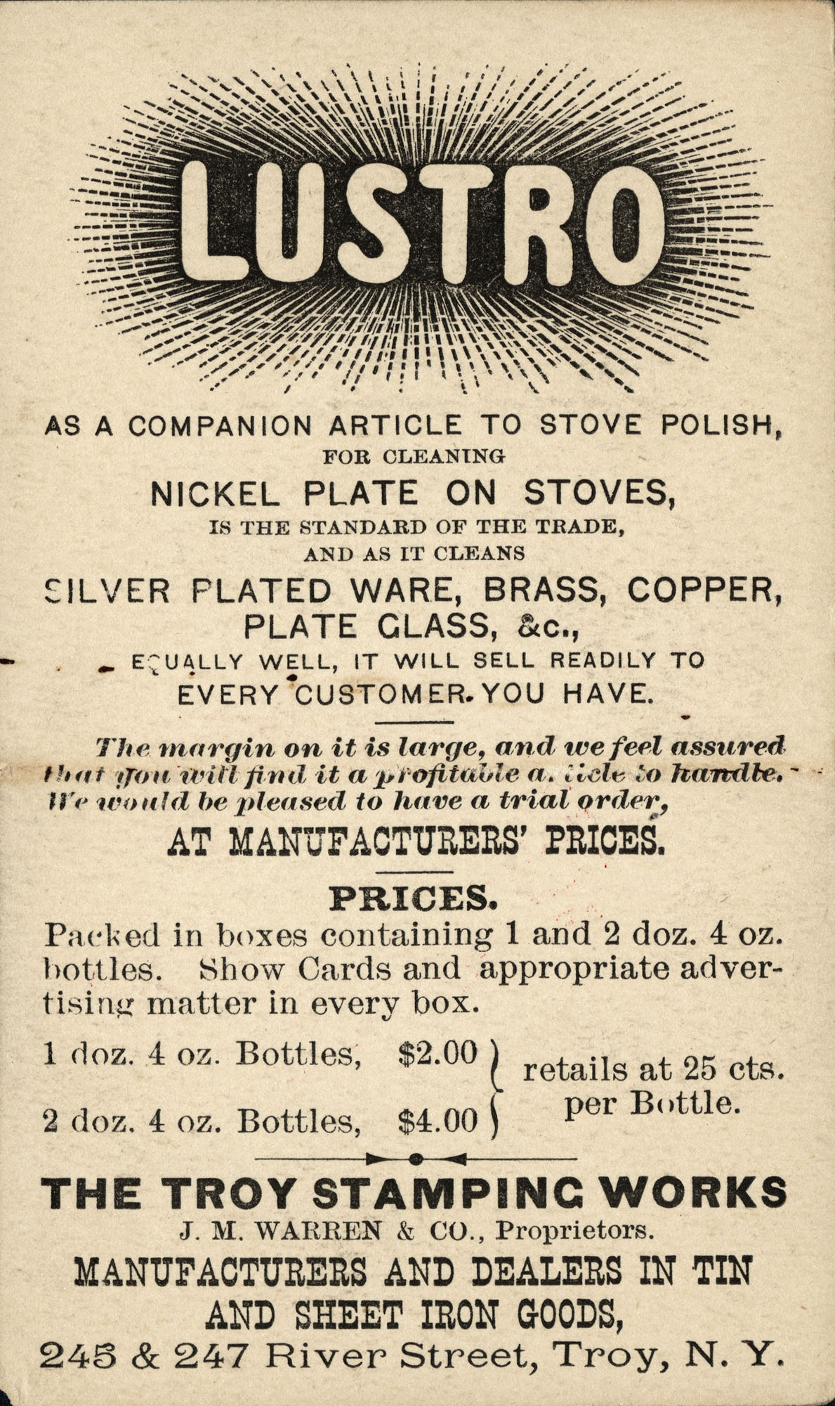 The Troy Stamping Works; J. M. Warren & Co., Proprietors, Troy, NY