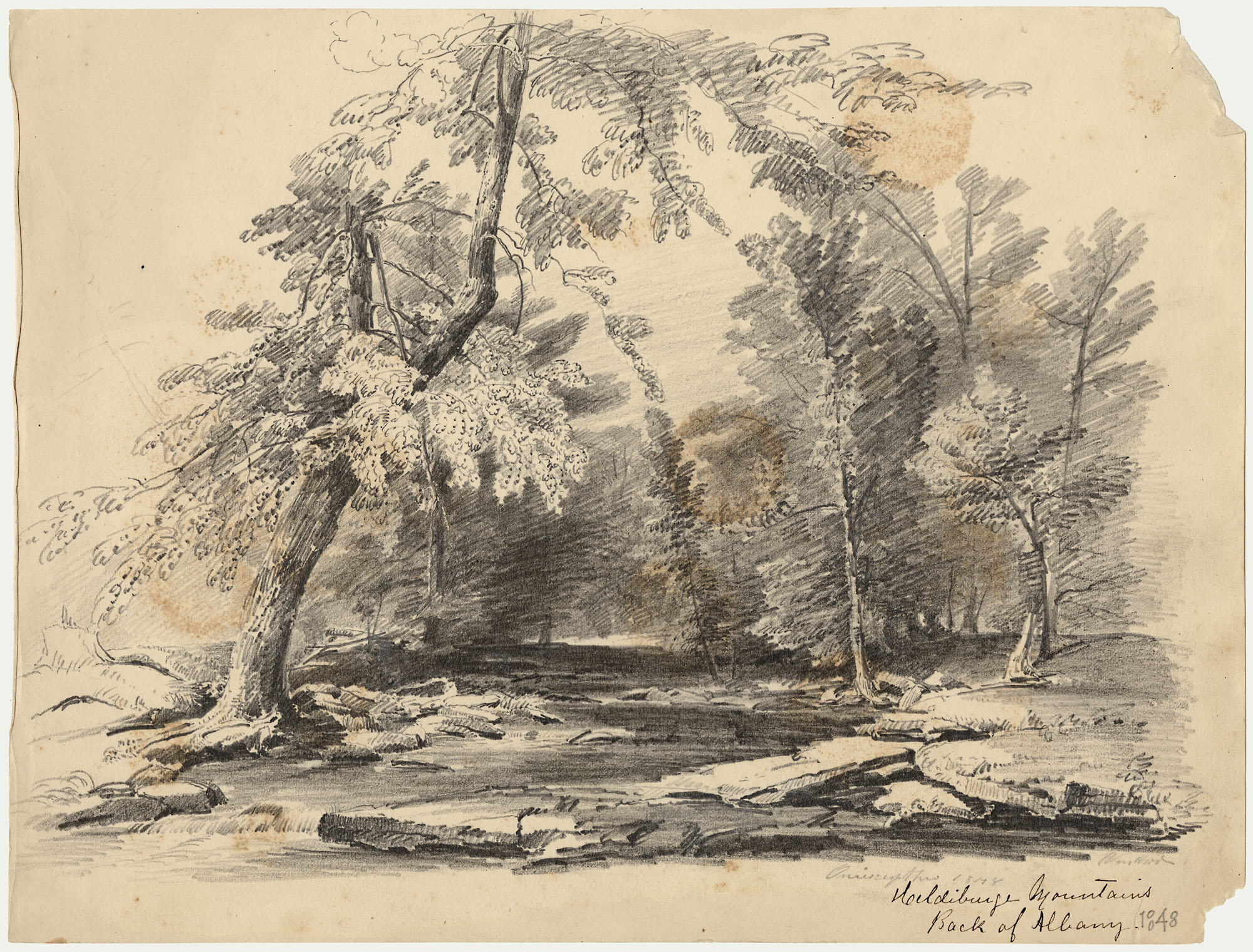 Inscribed in pencil on front lower right: Oniscepthaw 1848/Wm Hart; inscribed in ink underneath pencil inscription: Helderberg Mountains/Back of Albany.; inscribed in pencil after ink inscription: 1848
