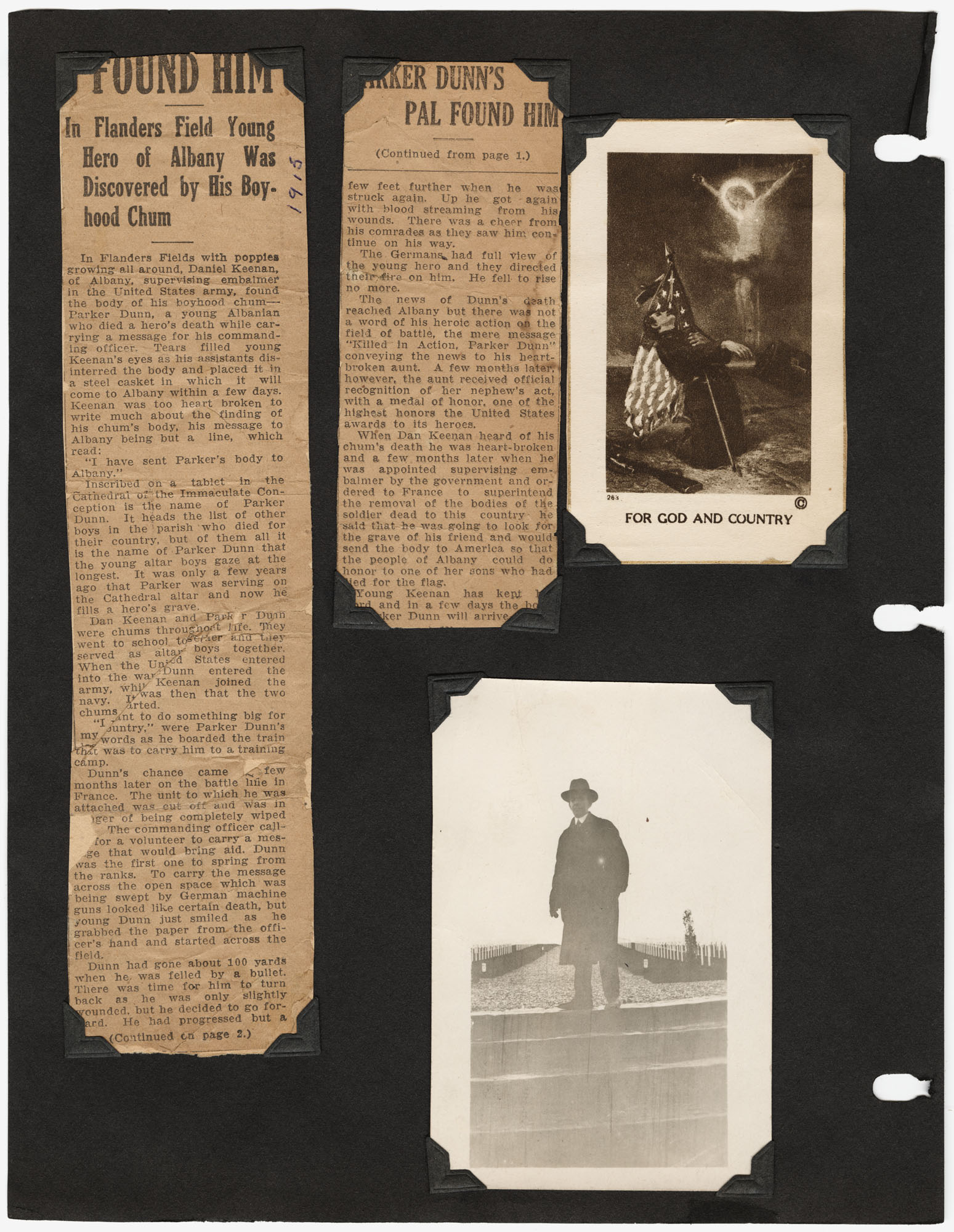 Scrapbook pages from the Pvt. Parker Dunn Archive, MG 45, from the Pvt. Parker F. Dunn American Legion Post No. 971, Port of Albany, NY