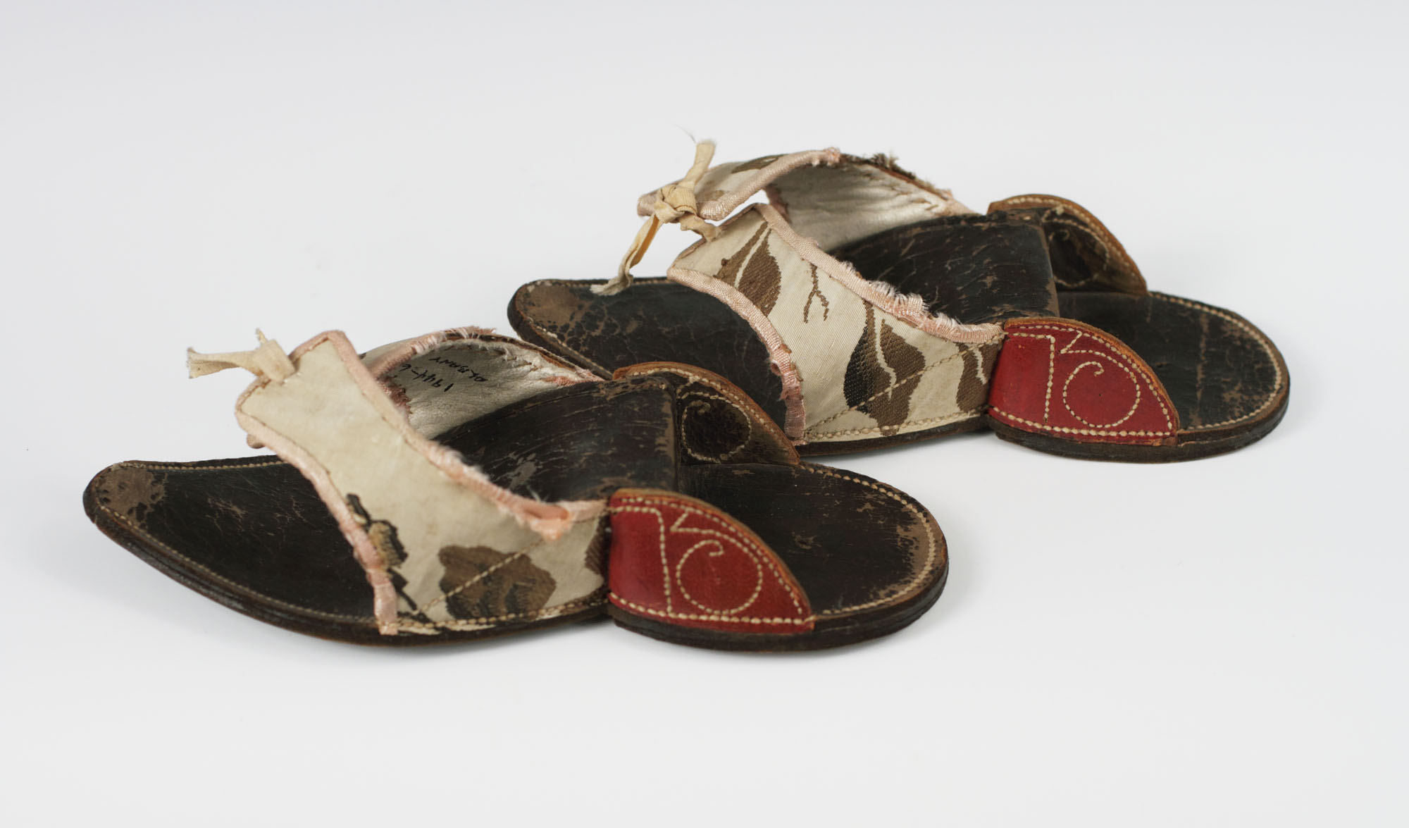 Brocaded Spitalfields silk, leather, wood, silk trim