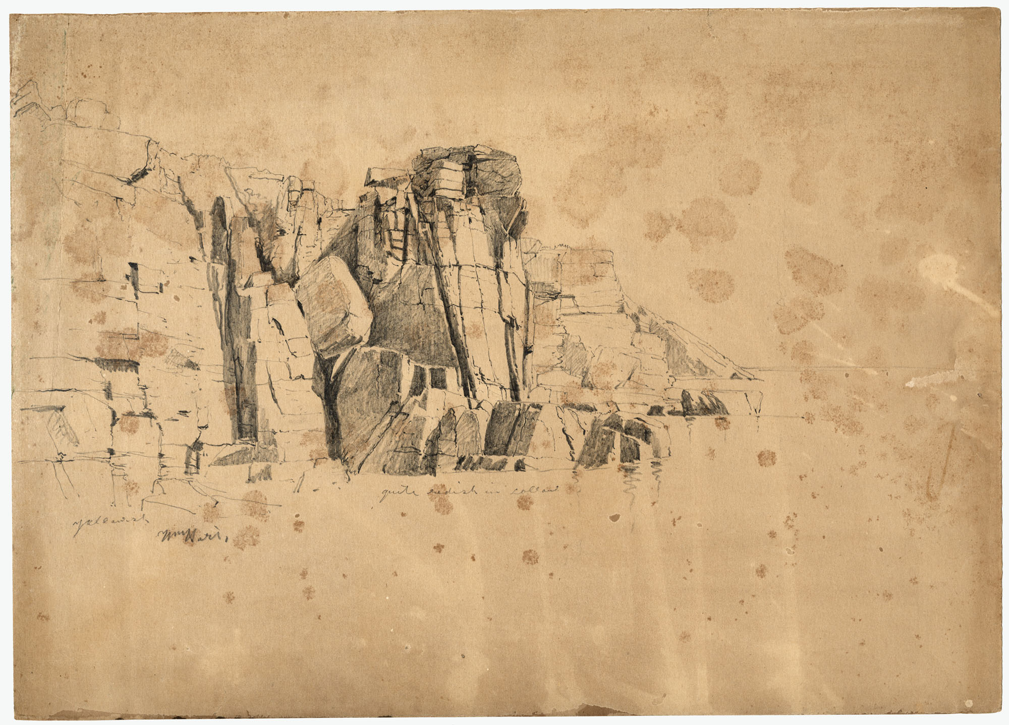 Color note inscribed in pencil at left: yellowish; color note inscribed in pencil center: quite reddish in color; signed in pencil at left: Wm Hart.
