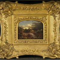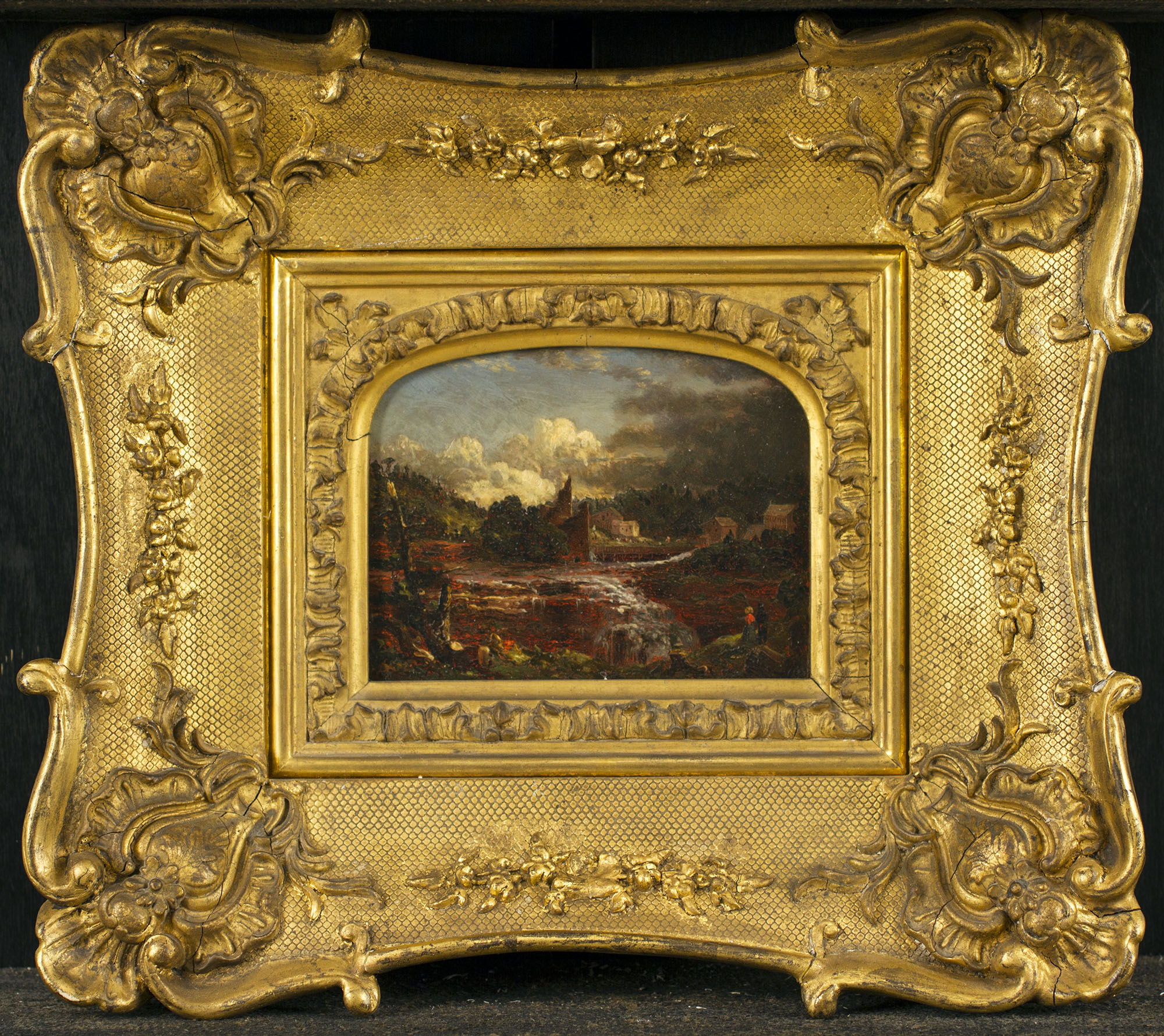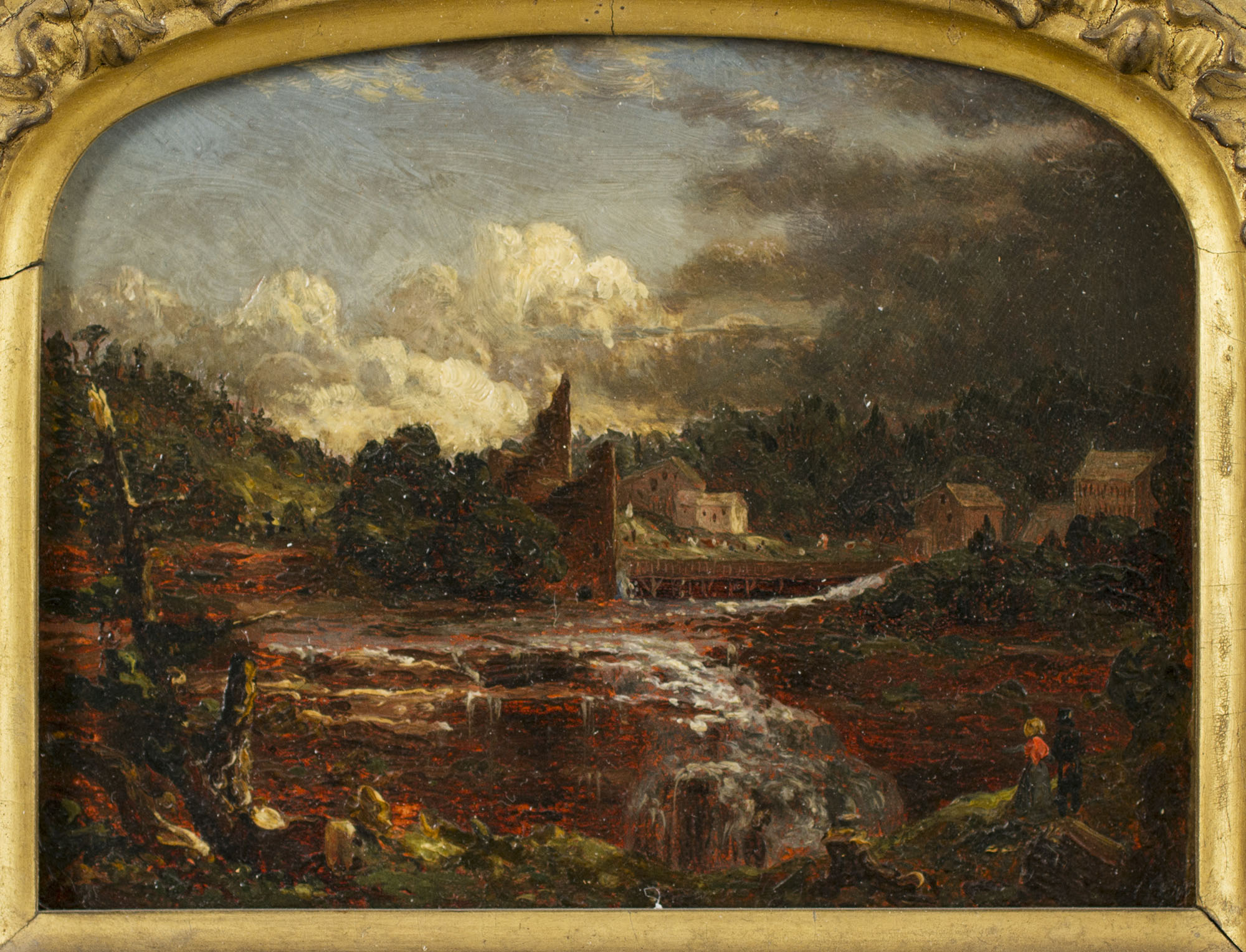 Inscribed on back in pencil: View on the Genessee River/D. Johnson; inscribed on back in ink: Ruined Mill at the/lower falls. Genesee River/David Johnson/1855.
