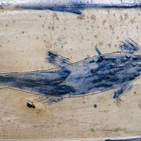 Salt-glazed stoneware with incised and cobalt-glazed decorations
