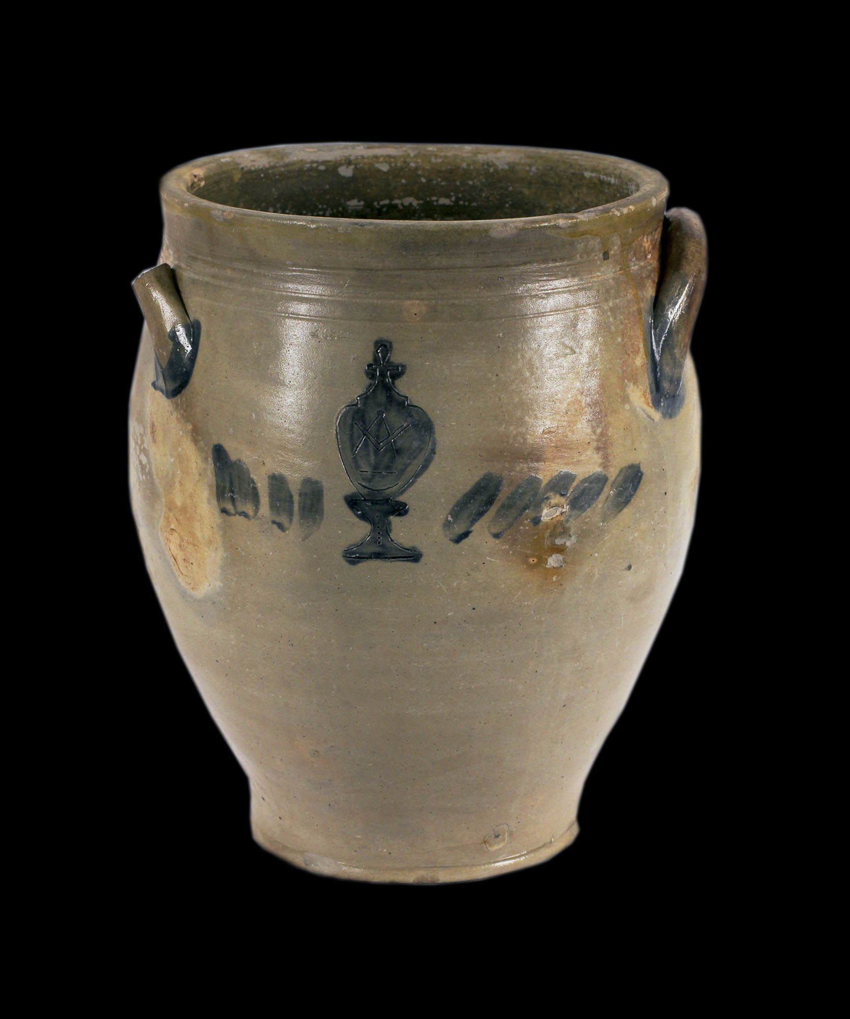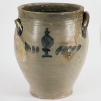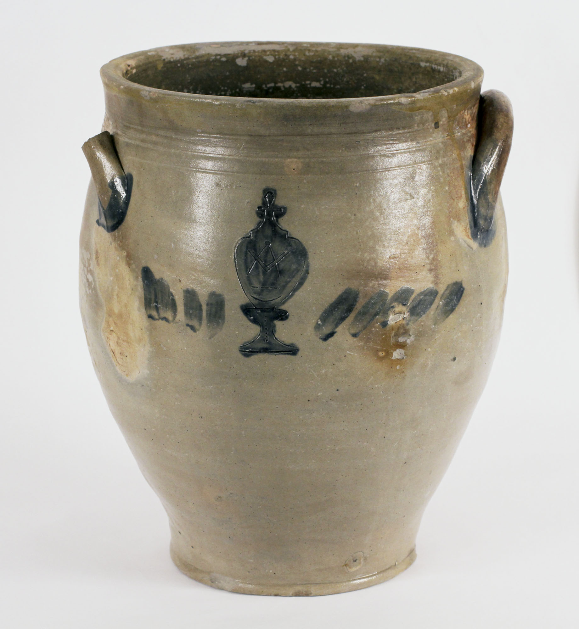 Salt-glazed stoneware with impressed and cobalt-glazed decoration