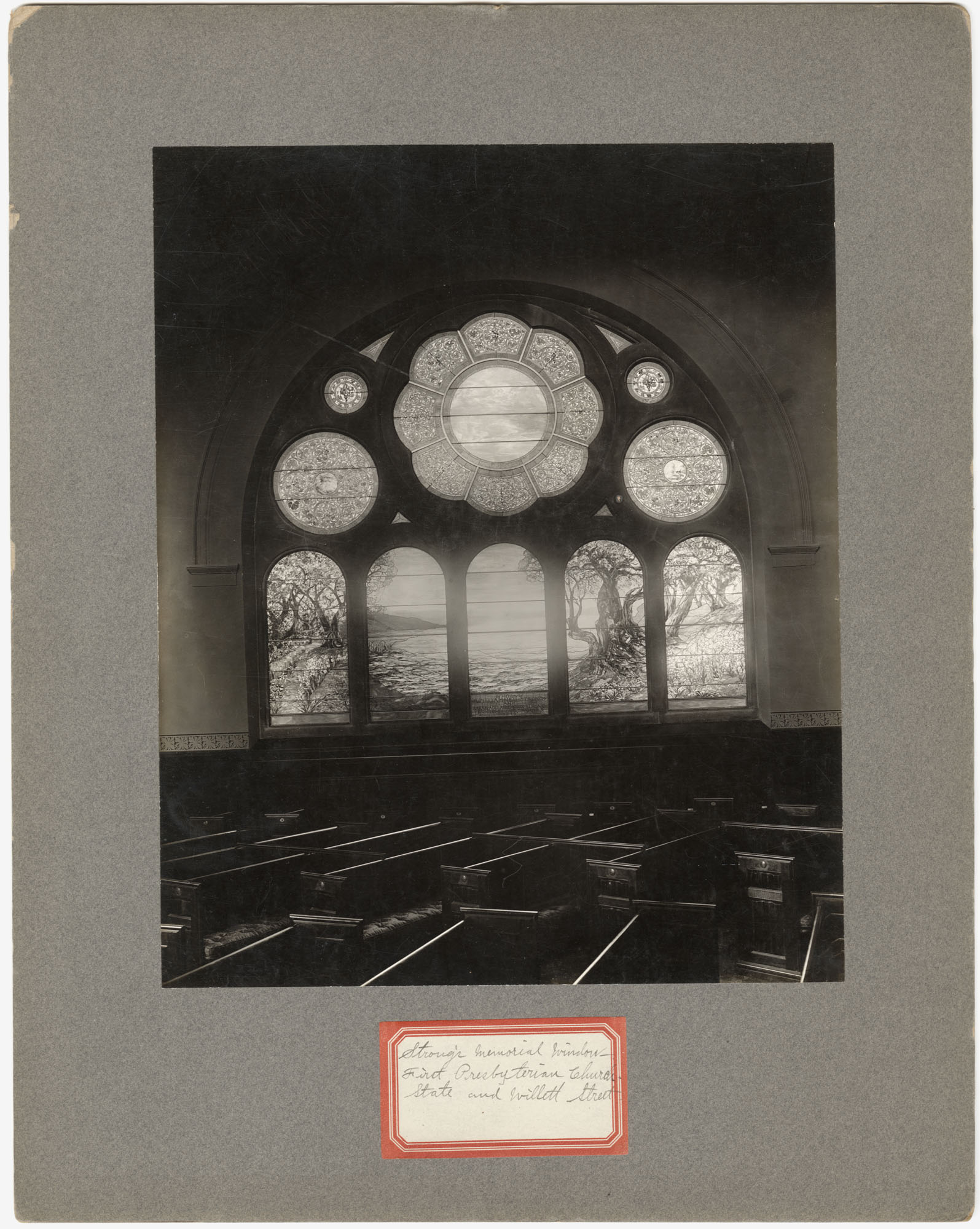 In pencil center bottom: “Strongs Memorial Window/ First Presbyterian Church/ State and Willet Street.”