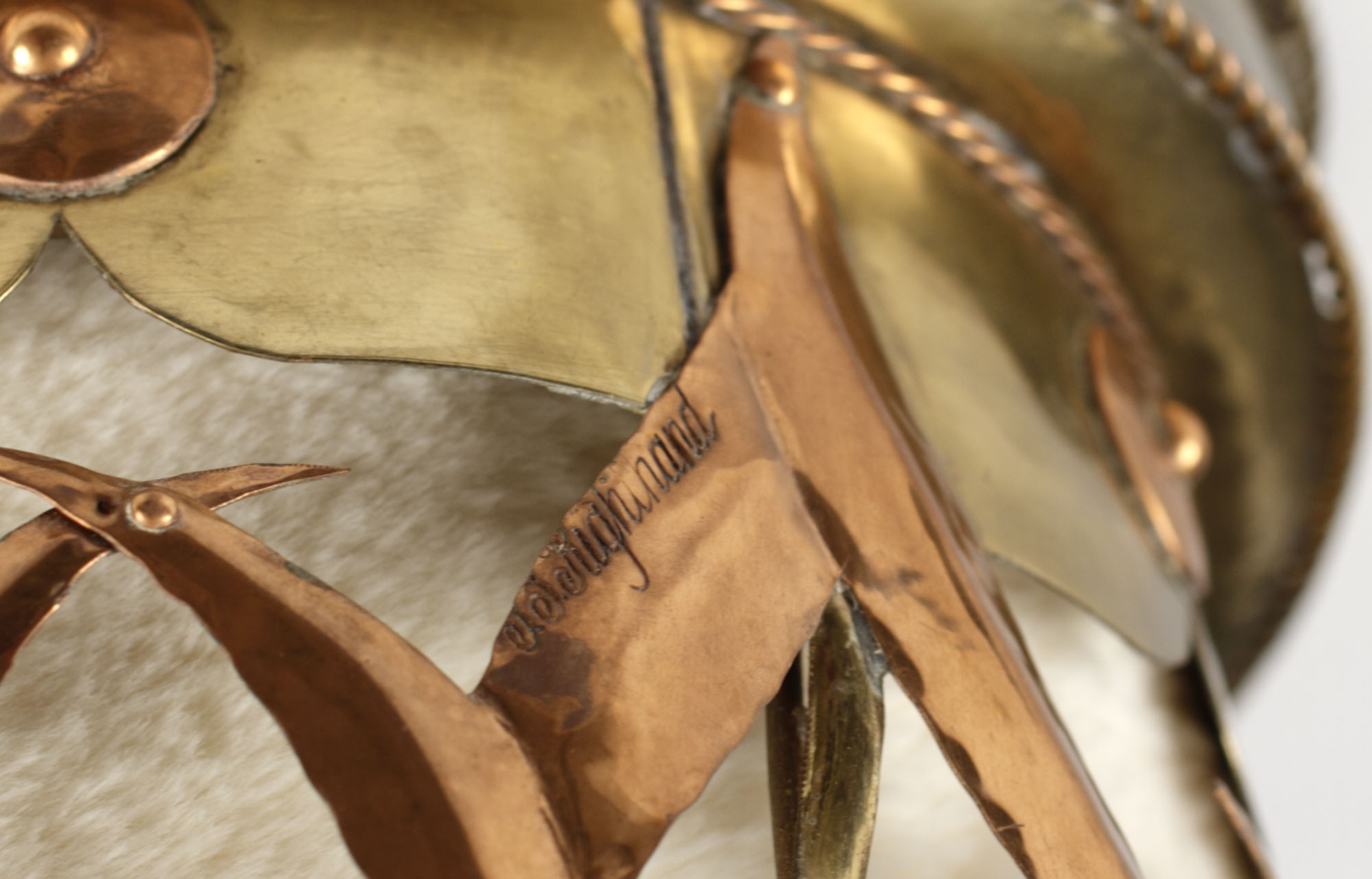 Brass, copper, rabbit fur and ermine tail