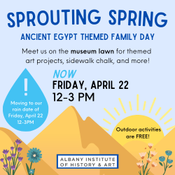 Join us to celebrate both Ancient Egyptian symbols and culture represented in the Ancient Egypt exhibition and Earth Day with fun spring art projects. To celebrate the regrowth of spring, as well as Ancient Egyptian beliefs of rebirth and renewal we'll create our own models of a Grain Osiris that can be sprouted to grow wildflowers.