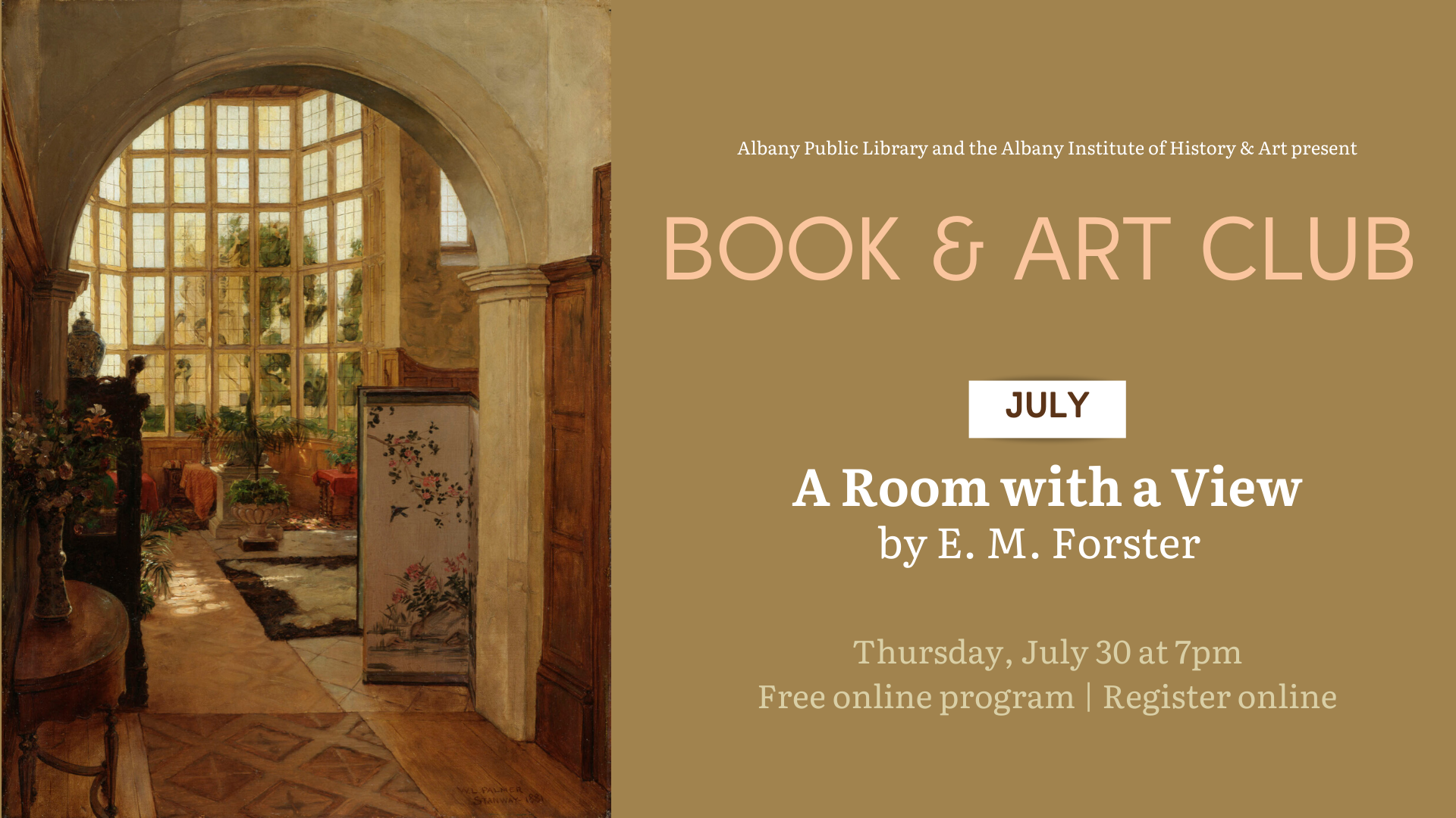 A free digital copy of A Room with a View can be accessed here. If you have any questions please reach out to Victoria Waldron, Education Assistant at one of the following: 518-463-4478 ext 404 or waldronv@albanyinstitute.org OR Amy Brozio-Andrews, Readers Services Librarian, 518-427-4300 or andrews@albanypubliclibrary.org.