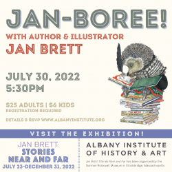 Join us at the museum on Saturday, July 30, 2022 from 5:30—7:30PM for our special Jan-boree! to celebrate the exhibition Jan Brett: Stories Near and Far with special guest author and illustrator Jan Brett, a reception, book signing, activities, and more!