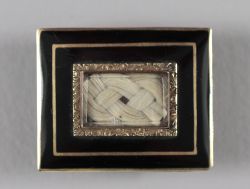 IMAGE: Mourning Brooch for Stephen Van Rensselaer III, unidentified maker, c. 1839, enamel on gold with human hair and glass, Albany Institute of History & Art Purchase, 1966.97