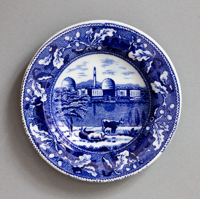 The images that Scott creates for his ceramic plates, platters, and pitchers depict unsettling views of nuclear power plants, landfills, abandoned industrial sites, aging urban centers, and isolating walls. As representations of the American landscape, they suggest a subversion of the picturesque aesthetic—the unpicturesque picturesque—and a new, disturbing norm, a new way of envisioning ourselves, our physical environment, and our society.