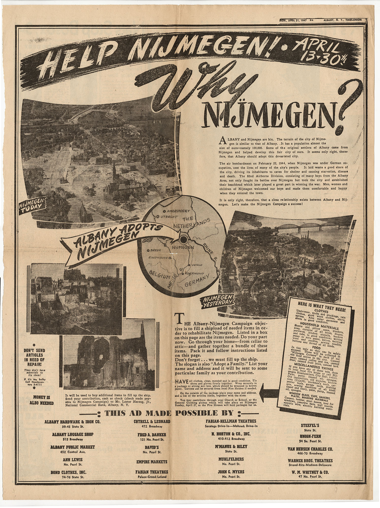 IMAGE: Help Nijmegen! April 13-30th, Times Union, Albany NY, April 21, 1947, Albany Institute of History & Art Library, MG238/F3, DI 1121