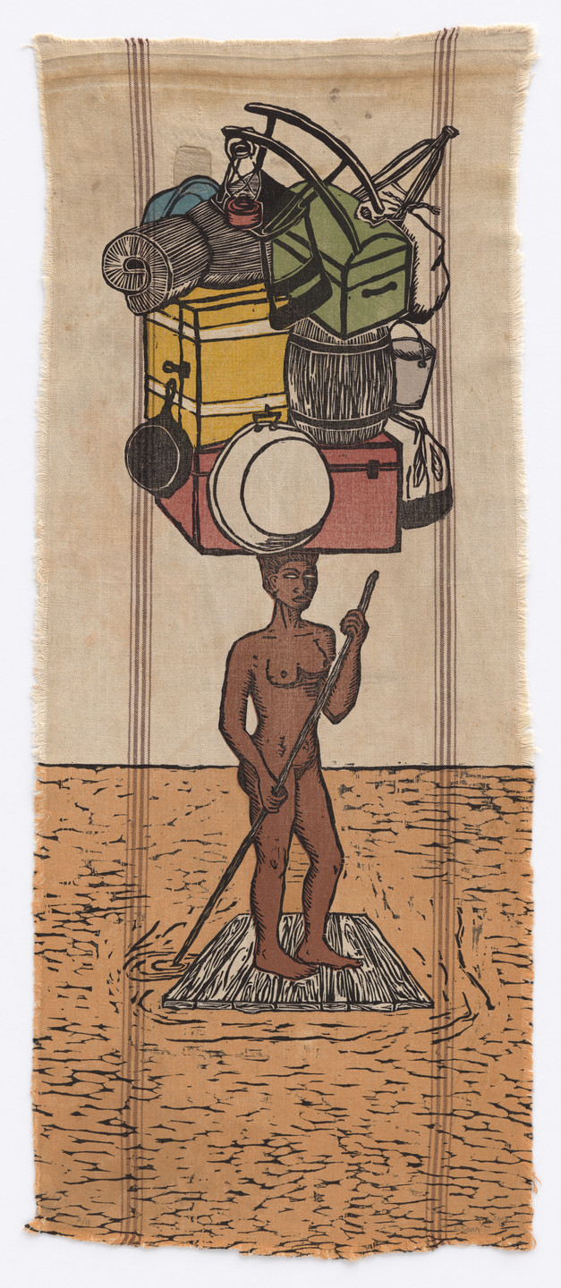 Image: Breach, Alison Saar, 2017, woodcut on vintage linen seed sack. The Frances Young Tang Teaching Museum and Art Gallery at Skidmore College, 2020.23.