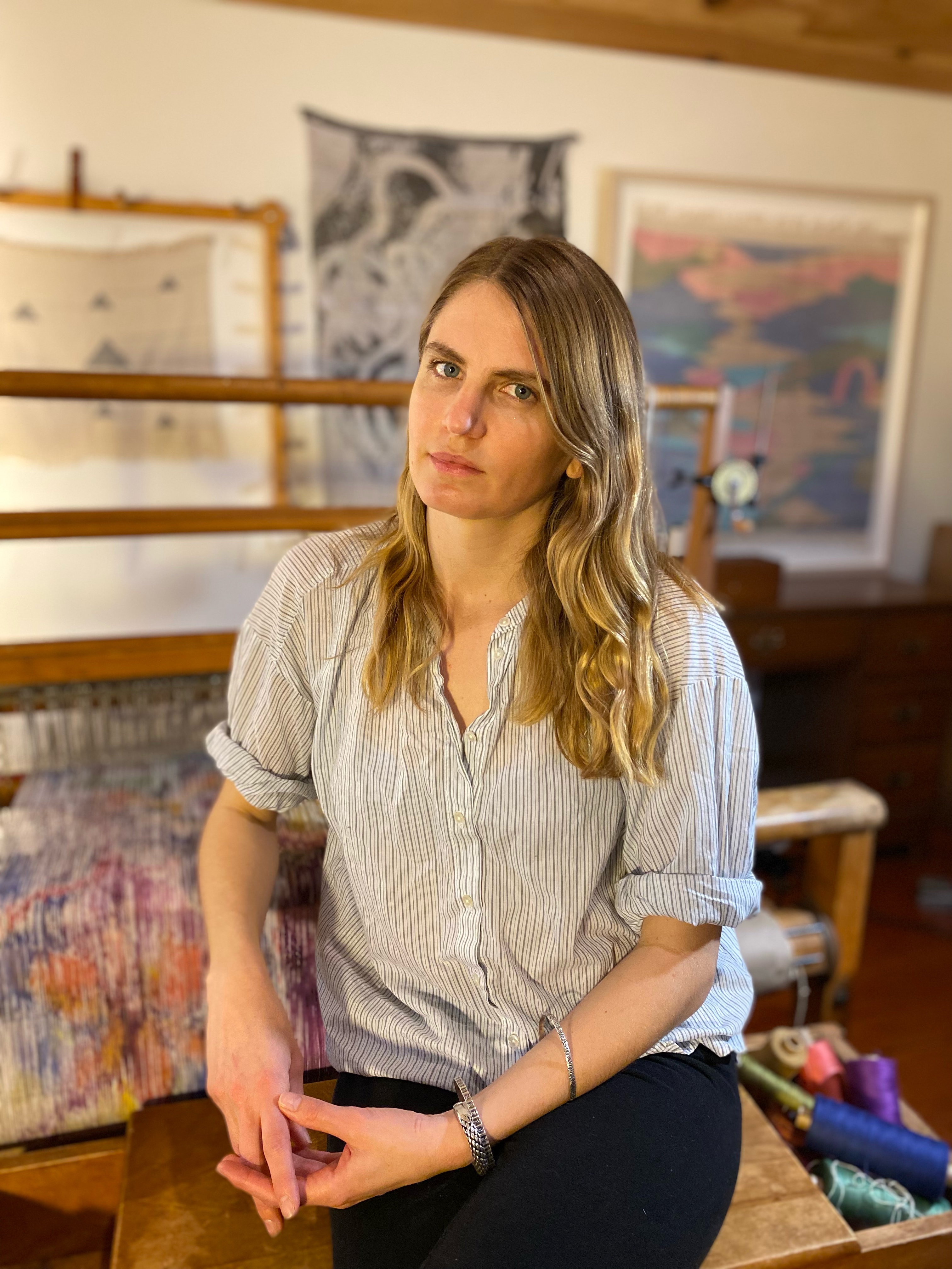 Margot Becker is an artist, weaver, and educator based in Hudson, NY. Through textile processes she explores sense of place, the natural environment, and the connection between the individual and the communal subconscious. Her work has been exhibited in New York, San Francisco, Los Angeles, Chicago and Houston. Margot Becker has attended residencies at the Houston Center for Contemporary Craft, ACRE, Mildred’s Lane, Rabbit Island and AZ West. She received her BA in studio art from Bard College in 2009 and her MFA from California College of the Arts in 2020 where she was awarded the Edwin Anthony & Adelaine Boudreaux Cadogan Scholarship and the Toni A. Lowenthal Memorial Scholarship for Excellence in Textiles.