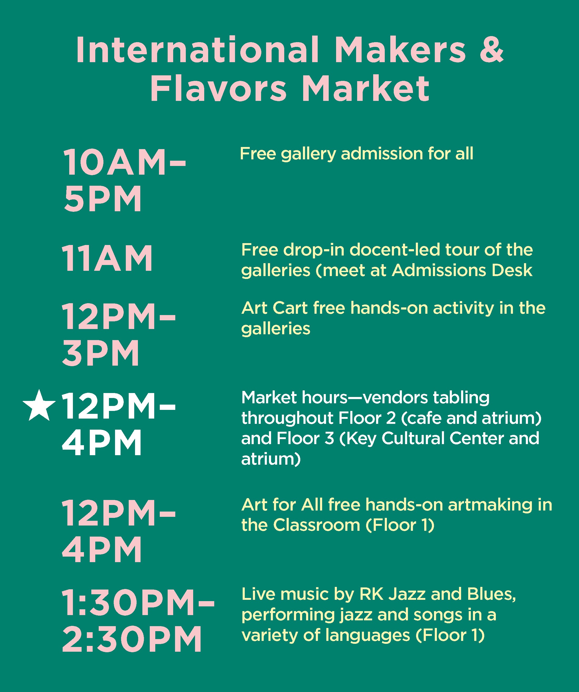 Vendors tabling throughout 2nd Floor (cafe and atrium) and 3rd Floor (Key Cultural Center and atrium)