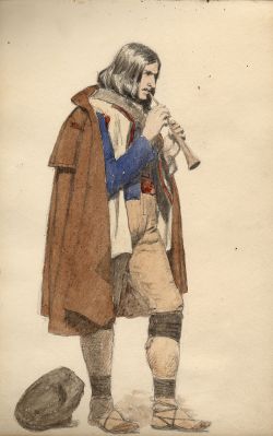 [Italian Musician, 1856-1857 Sketchbook, Sanford Robinson Gifford (1823-1880), 1856-1857, pencil and watercolor on paper. AIHA, gift of Marian Gifford Johnson Shaw and Mrs. George C. Cummings, 1966.13.5]