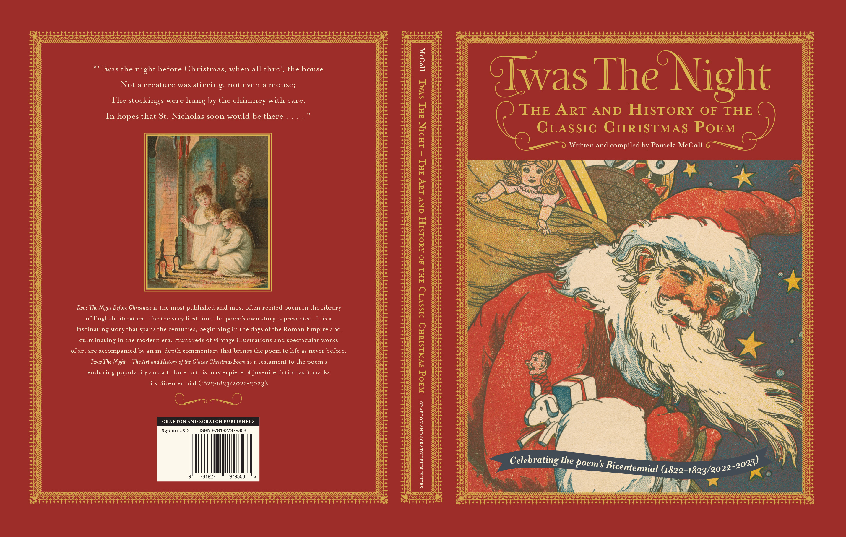 First published in the Troy Sentinel, Moore’s poem soon attracted attention of readers around the country. Since then, the poem has been translated into hundreds of languages and recited from memory by millions of children around the world. In her new book, Twas the Night before Christmas: The Art and History of the Classic Christmas Poem, author Pam McColl has lovingly researched the artistic and literary origins of the poem. The book includes hundreds of vintage images and classic children’s book illustrations, as well as many old and new literary stories that help to explain the enormous impact Moore’s poem has had on holiday customs and traditions.