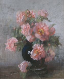 Julia McEntee Dillon (1834–1919), Pink Peonies and Roses, pastel on paper laid on canvas, 1885, Ulster County Historical Society.