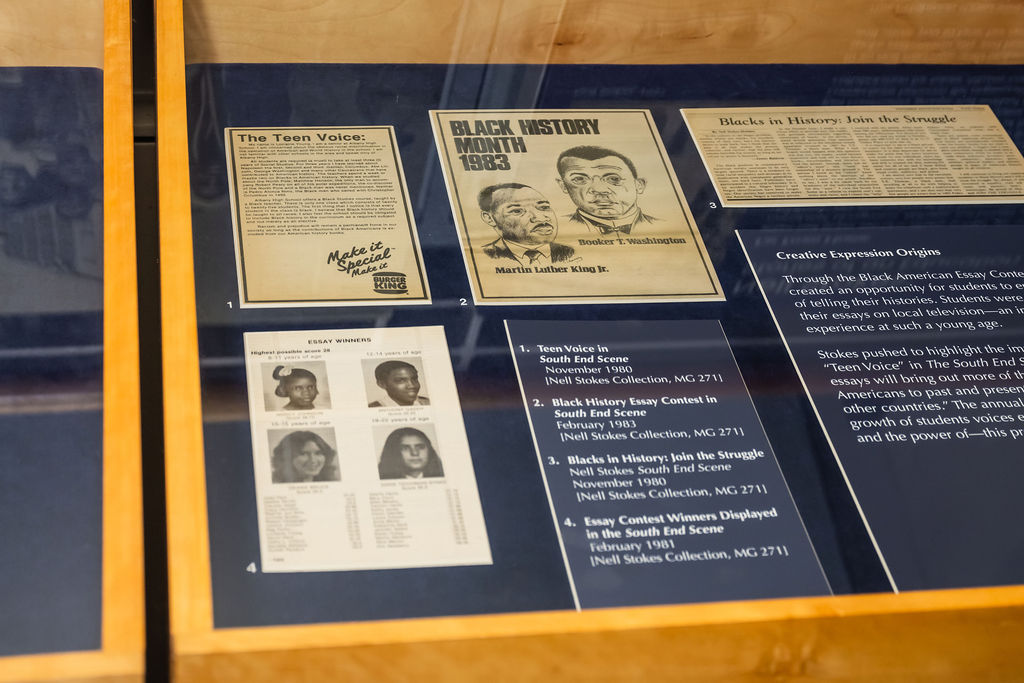 This exhibition showcases the Nell Stokes Manuscript Collection, which includes photographs, scrapbooks, pamphlets, and more that highlight the breadth of her network. The scrapbooks were gifts from a former Teen Action Group member whom Stokes had inspired; the essay collections are filled with sponsorship ads from sororities and fraternities interested in her mission; and the newspaper clippings feature articles Stokes wrote, as well as advertisements purchased for the Black American History Essay Contest (now called the Creative Expressions Contest). As Stokes poured her time and creativity into her new city, the city poured back into her.