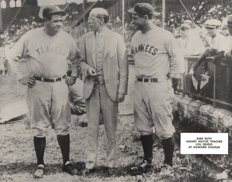Perhaps the region’s best known minor league team was the Albany Senators. They play major league teams like the Yankees in barn-storming games at Albany’s Hawkins Stadium that featured Babe Ruth, Lou Gehrig, and Yogi Berra. Hawkins is famous for being the first ballpark in the Capital District to have field lights installed by General Electric of Schenectady.