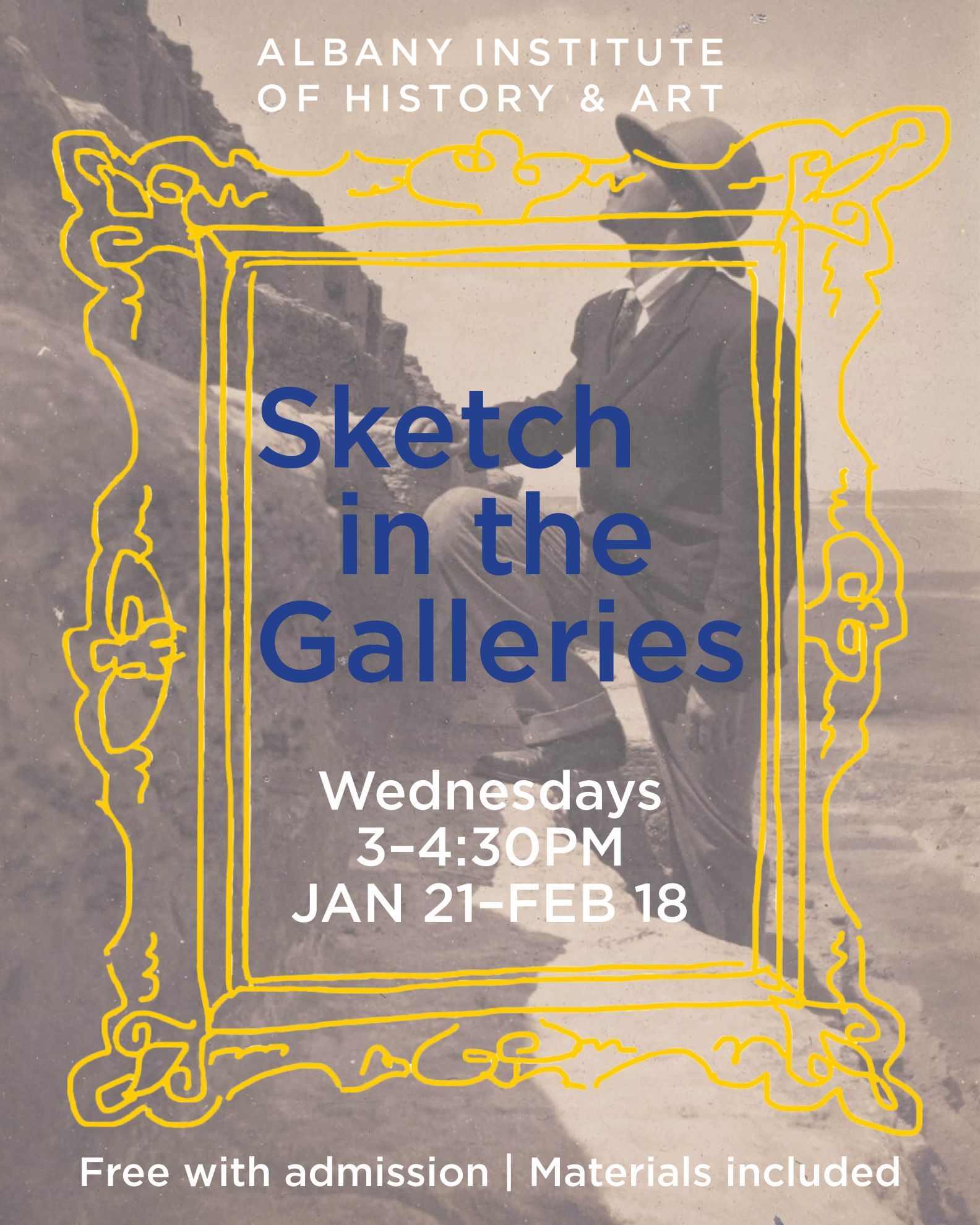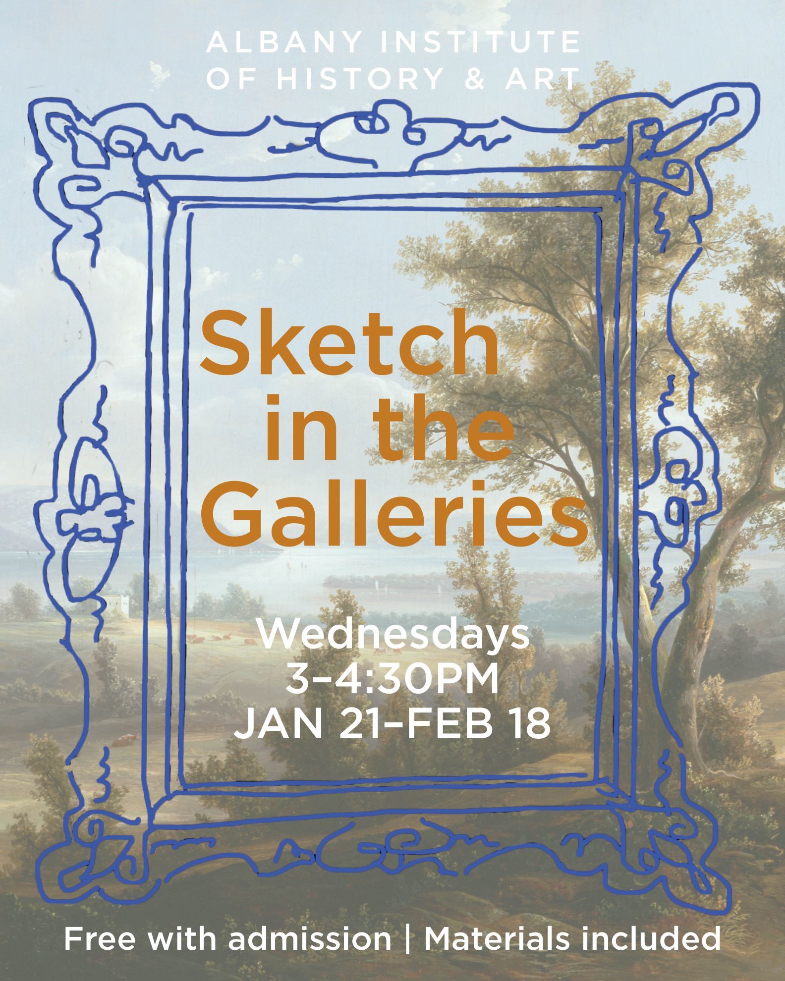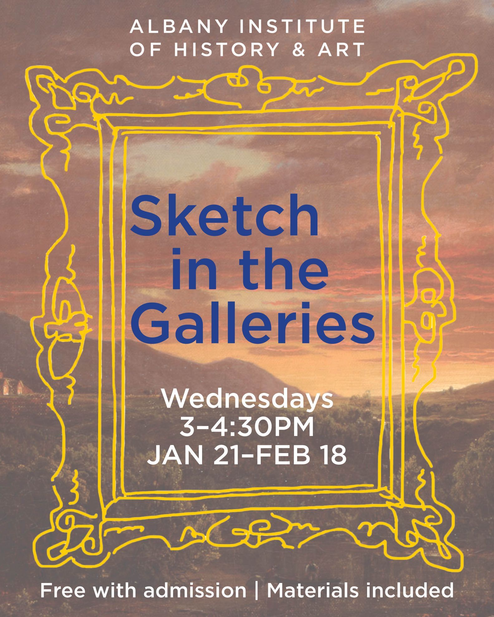 Sketch in the Galleries is a weekly series held Wednesdays from 3–4:30PM at the Albany Institute from January 21–February 18, 2026.