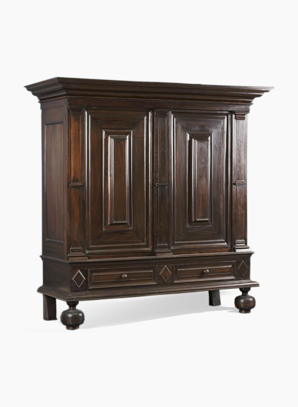The large storage cupboard known as a kast is one of the best examples of a New York adaptation of a traditional Dutch cabinet form. In Dutch households the kast held table and bed linens and articles of clothing. Because of its impressive size and prominence in the main room of the house the kast also became a symbol of status.