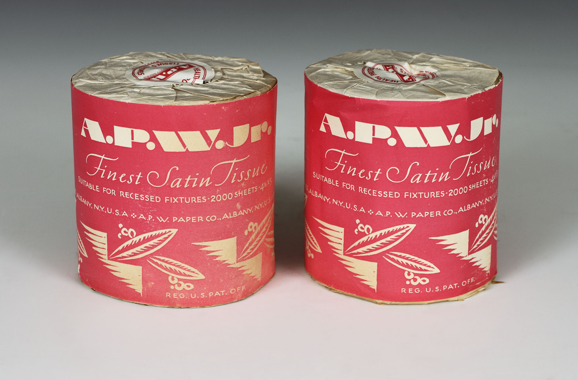 When Seth Wheeler died in 1925, APW was a flourishing company with headquarters on Broadway in Albany. The rolls shown here with their original bright pink wrappers date to the 1930s and were designed by a German-born graphic designer named Hajo Christoph who updated APW’s packaging with bold, Art Deco styling.