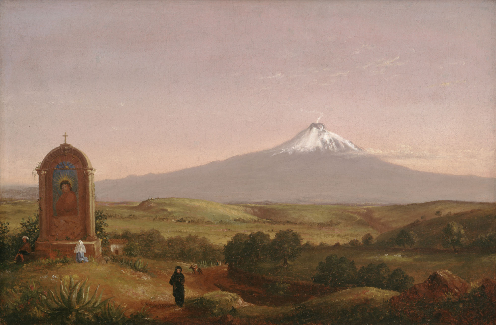 There is no evidence to suggest that Sarah Cole, the younger sister of artist Thomas Cole, ever traveled to Italy, yet her painting of Mount Aetna on the east coast of Sicily is a beautiful example of the American fascination for European views. Sarah is mostly remembered for painting copies of her brother’s work, and Thomas did paint several landscapes featuring Mount Aetna, but none of them match exactly the composition of Sarah’s piece. It could be that Sarah’s painting copies an unknown, and now lost, landscape by her brother. Sarah may also have altered Thomas’s views of Mount Aetna to create her own composition.