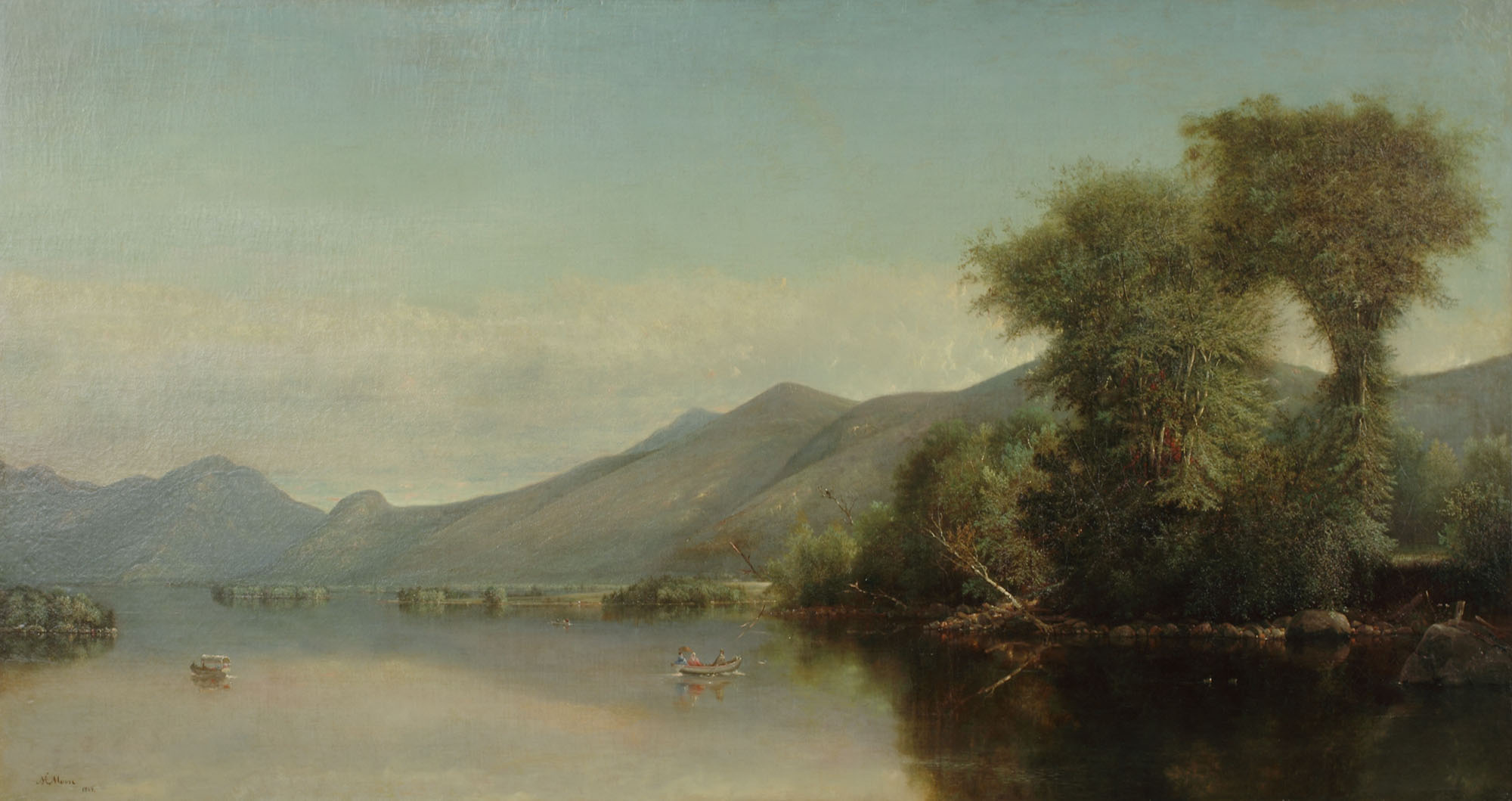 Bricher’s landscape captures the charms of the lake—the beautiful water, the scenic hills and mountains, and the boating and fishing opportunities. In the year that he painted Lake George, 1866, Bricher began working with Louis Prang & Co., a Boston printing business that specialized in chromolithographs, color-printed pictures that faithfully copied the color range of original paintings. Chromolithographic prints of Bricher’s work quickly earned the artist widespread notoriety.